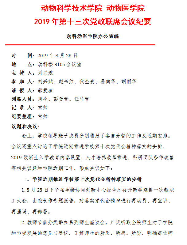 【党政联席会纪要】2019年第十三次院党政联席会纪要