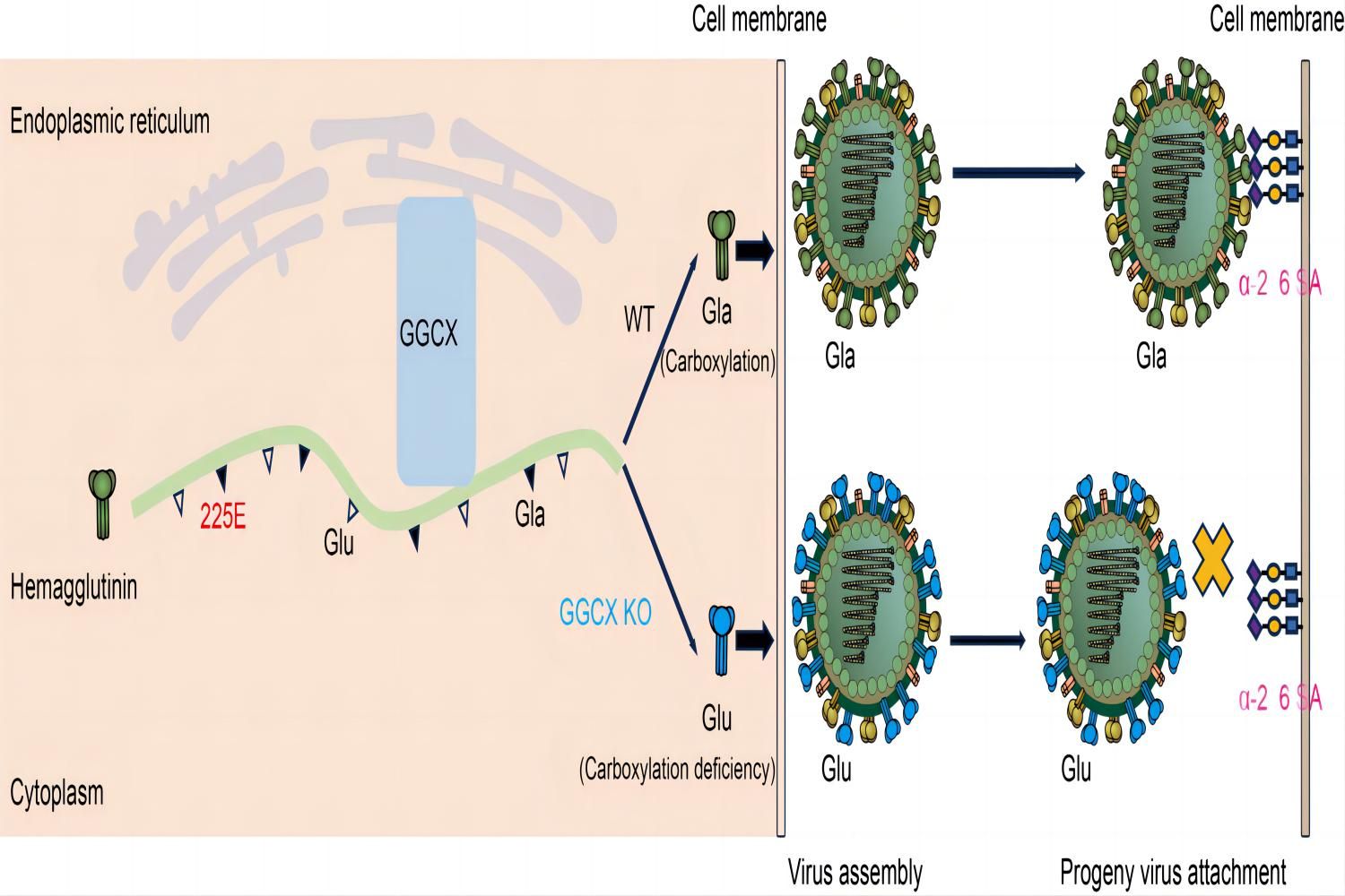 GGCX介导EA H1N1 SIV HA 225E羧化修饰调控子代病毒受体结合活性