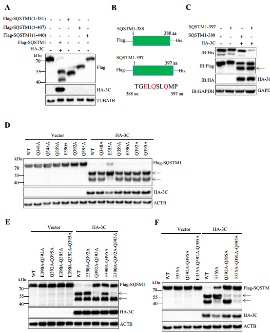 塞内卡谷病毒(Seneca Valley Virus,SVV)属于小RNA病毒科塞内卡谷病毒属中的一员,临床症状与口蹄疫类似,引起新生仔猪大量死亡和成年猪口部和蹄部出现水泡。SVV感染宿主细胞会诱导细胞自噬,宿主选择性自噬受体p62通过靶向病毒蛋白VP1和VP3到溶酶体而降解。为了促进病毒复制病毒蛋白常常也存在拮抗宿主抗病毒蛋白的作用,该研究阐明了SVV 3Cpro通过在多位点切割p62蛋白进而抑制其介导选择性自噬的功能,同时也抑制了其抗病毒效果。此外还发现在不同的宿主细胞中诱导细胞自噬对病毒的增殖起到不同的作用。