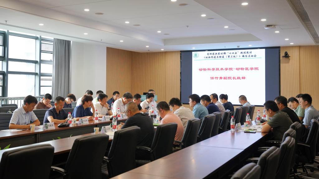 (通讯员:季强、彭泰筼)2023年7月2日上午,农业农村部“十四五”规划教材《动物防疫与检疫(第三版)》编写启动会于第四综合楼D207召开,该教材由我校栗绍文教授和吉林农业大学王春凤教授担任主编。来自全国18所高校和管理部门的31名编委会成员通过线下或线上方式参加了会议,我校本科生院王春潮处长、动科动医学院任竹青副院长、中国农业出版社王晓荣编辑莅临会议指导。会议由栗绍文教授主持。
