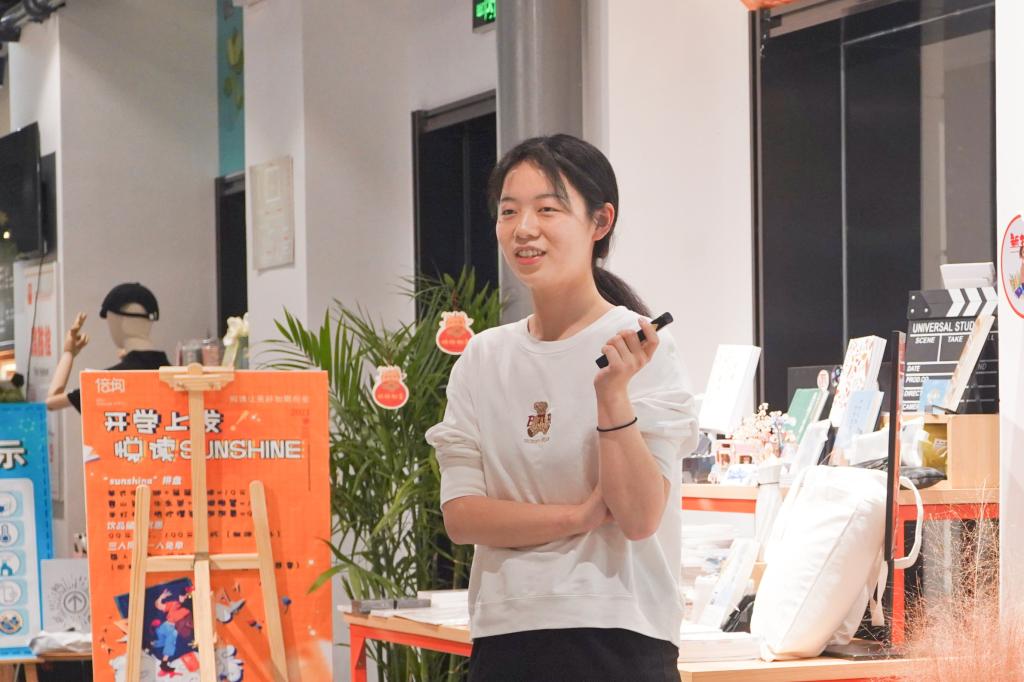 张盼则根据考试分值分布与做题经验进行分享。她强调了英语学习备考中“积累”的重要性,提出要善用APP、微信公众号与英美电视剧、电影等,在日常学习生活中积累英语知识。