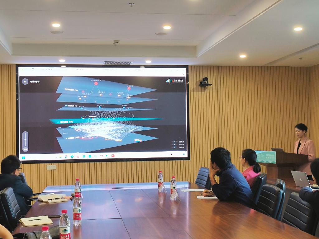 知识图谱建设公司人员现场演示了动物科学和动物医学两个专业六个层级的图谱体系,展示了专业课程建设思政点、实践点、知识点等内容,并通过知识点抓取,展示了课程与课程之间的关联性与重复度。同时,针对不同课程分别演示了课程知识图谱、问题图谱、能力图谱等方面内容,最后,建设公司演示了以宋彤星老师为采集原型创建的数字人以及AI助教。