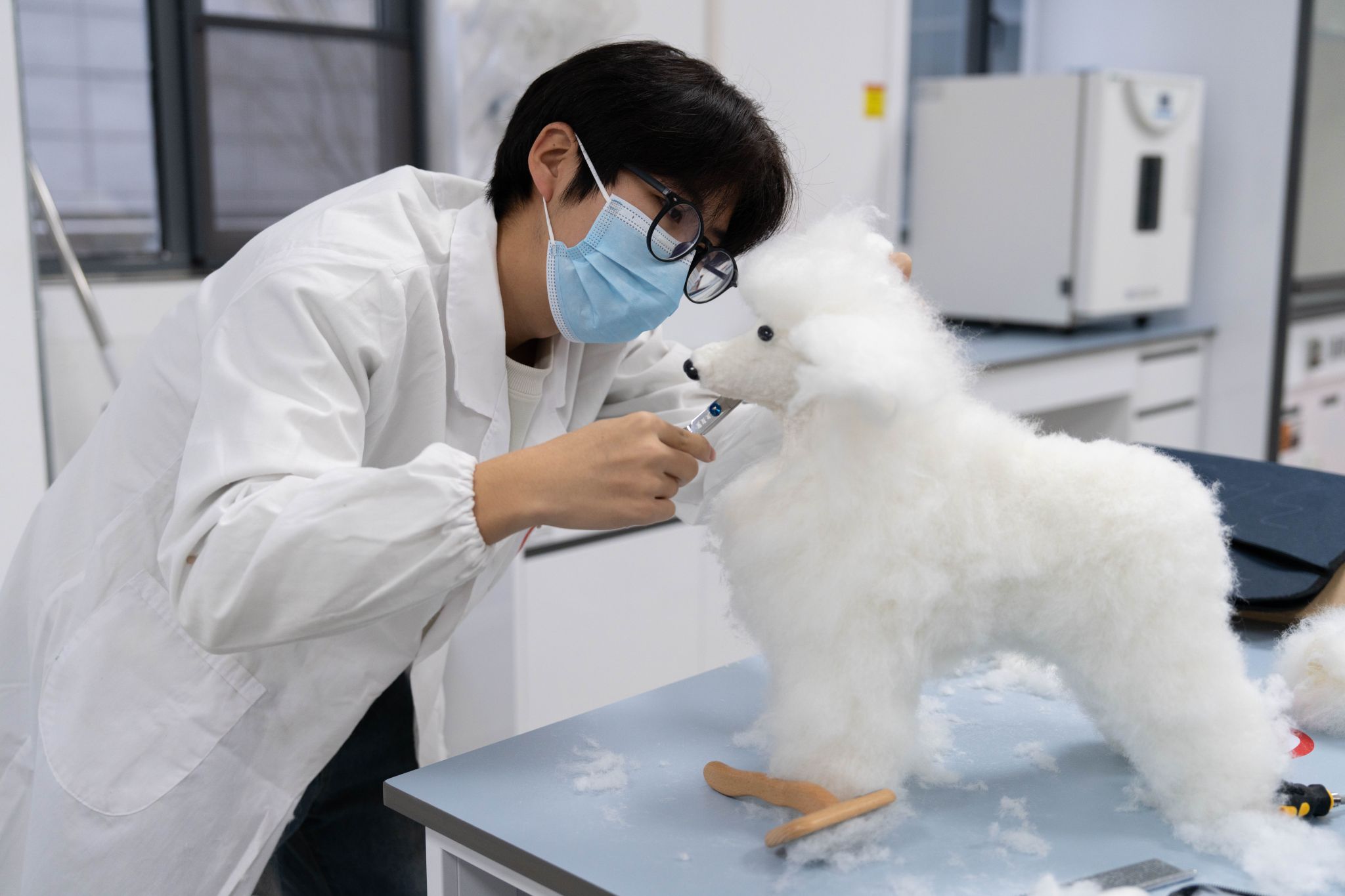 谈及大赛中印象深刻的部分,动医2301班陈梦伊表示:“最难忘的是拉姆装尾球的修剪,要精准把控弧度和圆润度,反复调整的过程,让我切实感受到了宠物美容的严谨与魅力。”