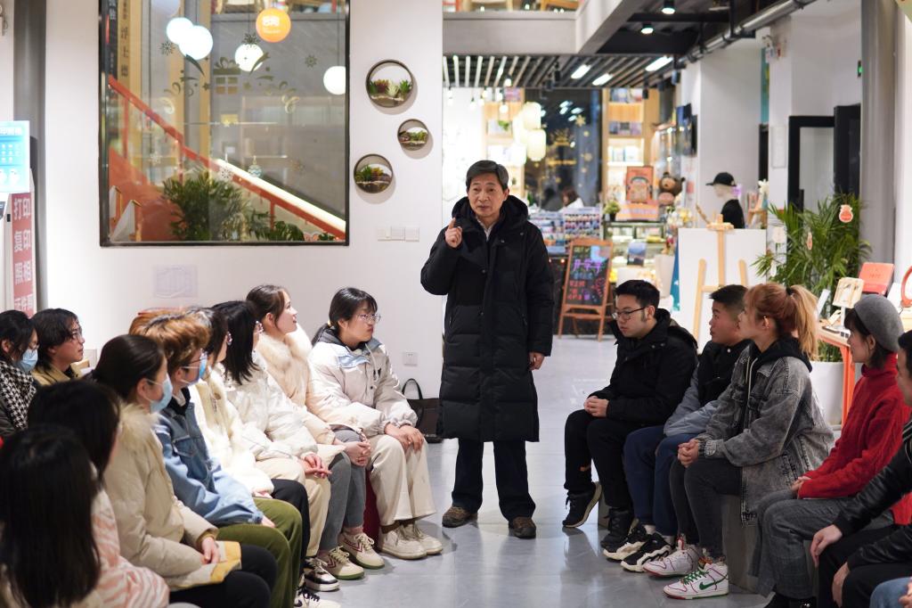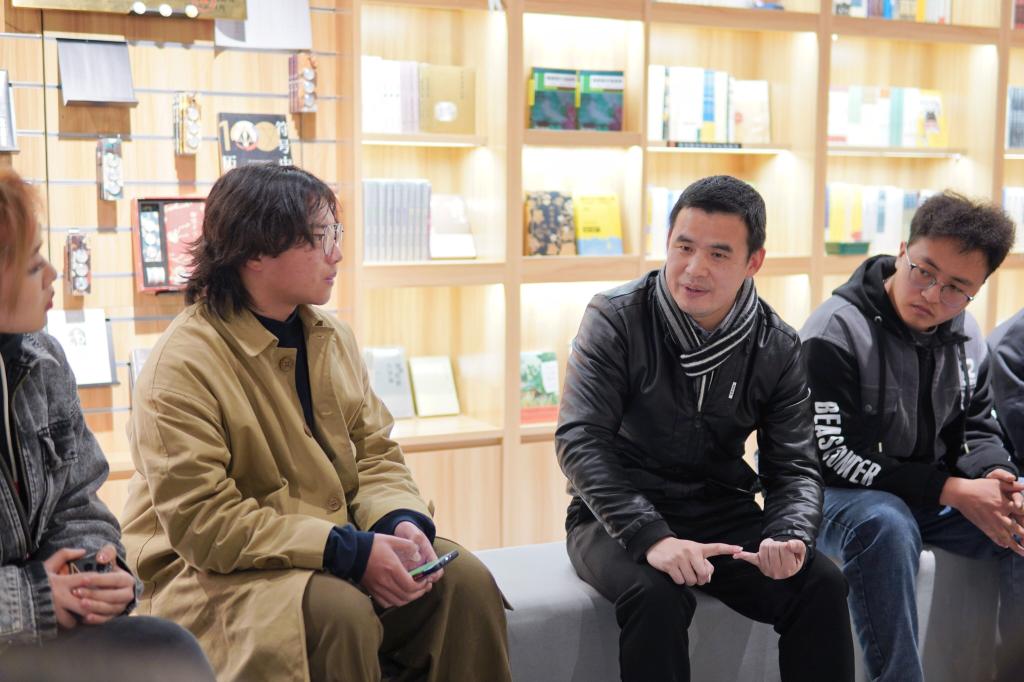 在倍阅书店,刘兴斌为同学们新学期的学习生活指明方向,鼓励大家珍惜烂漫春光。