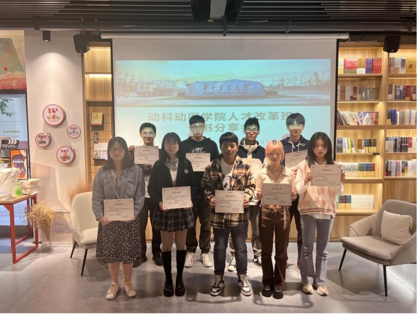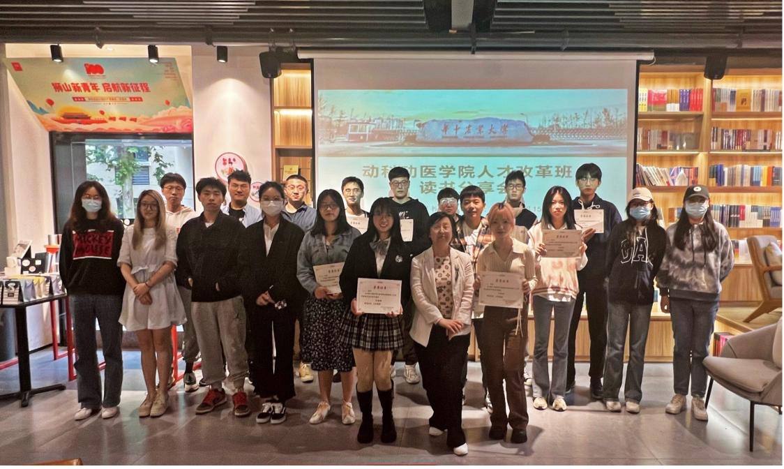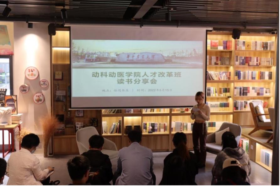 (通讯员:许银行、王璐)2022年5月15日下午,人才改革班读书分享会在我校倍阅书店举办。高级兽药创制班班主任郝海红老师出席活动,20余名人才班同学参加读书交流。分享会由周瑞同学主持。