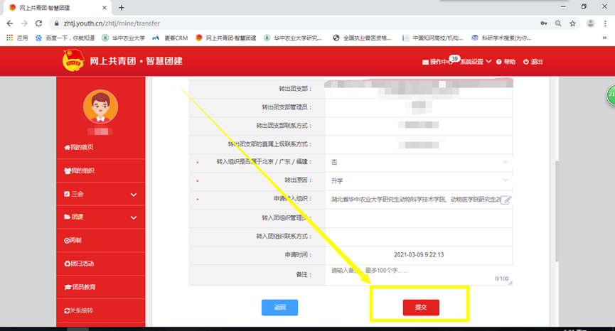 7.学院团工委同意转入,即可完成第一阶段团组织关系转接。