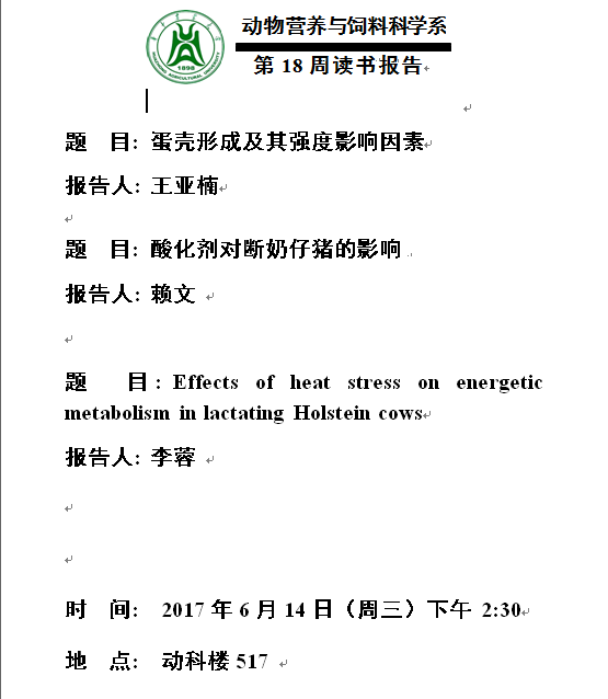 动物营养与饲料科学系第18周读书报告