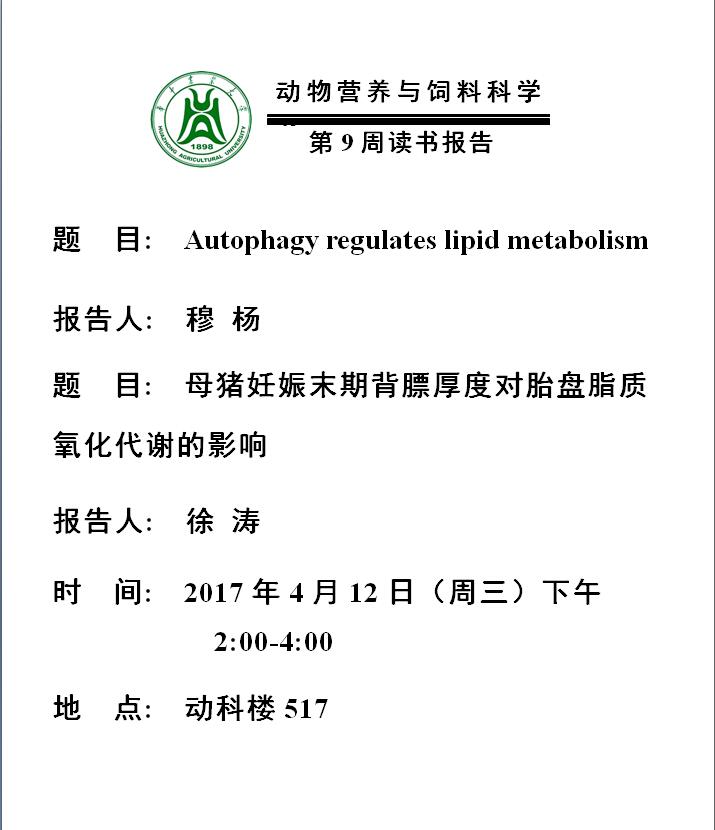 动物营养与饲料科学系第9周读书报告海报告