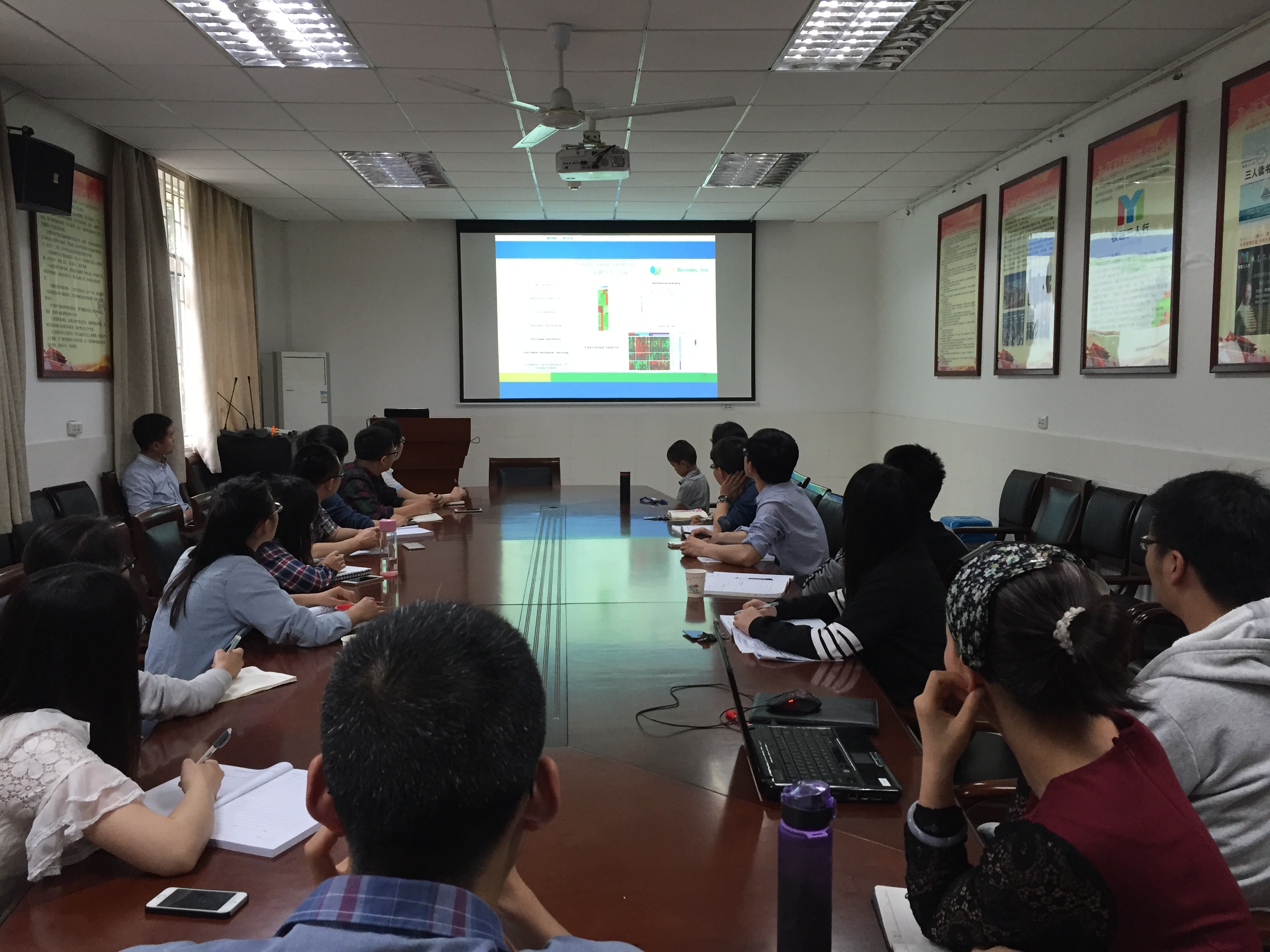 (通讯员:郑子龙)412号下午,我院猪营养调控与饲料安全团队晏向华教授课题组与杭州景杰生物科技有限公司技术人员的远程学术交流会在动科楼B105会议室成功实现。本次学术交流的主题是“转录组、蛋白质组、蛋白质翻译后修饰组等多组学技术的联合分析方法”,晏向华教授课题组全体成员,景杰生物刘一丹博士等技术团队成员参与本次远程学术交流。整个学术交流通过好视通软件实现,这也是晏向华课题组首次通过远程在线视频的方式,开展对外学术交流活动。