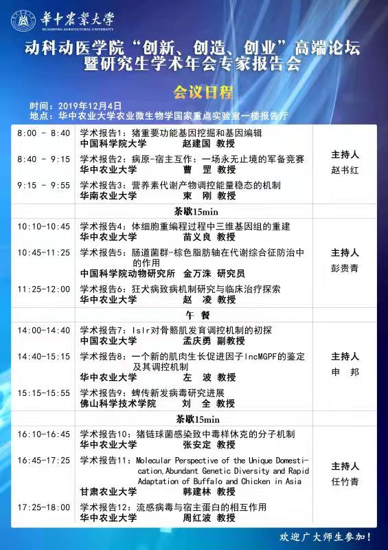 动科动医学院“创新、创造、创业”高端论坛暨研究生学术年会专家报告会