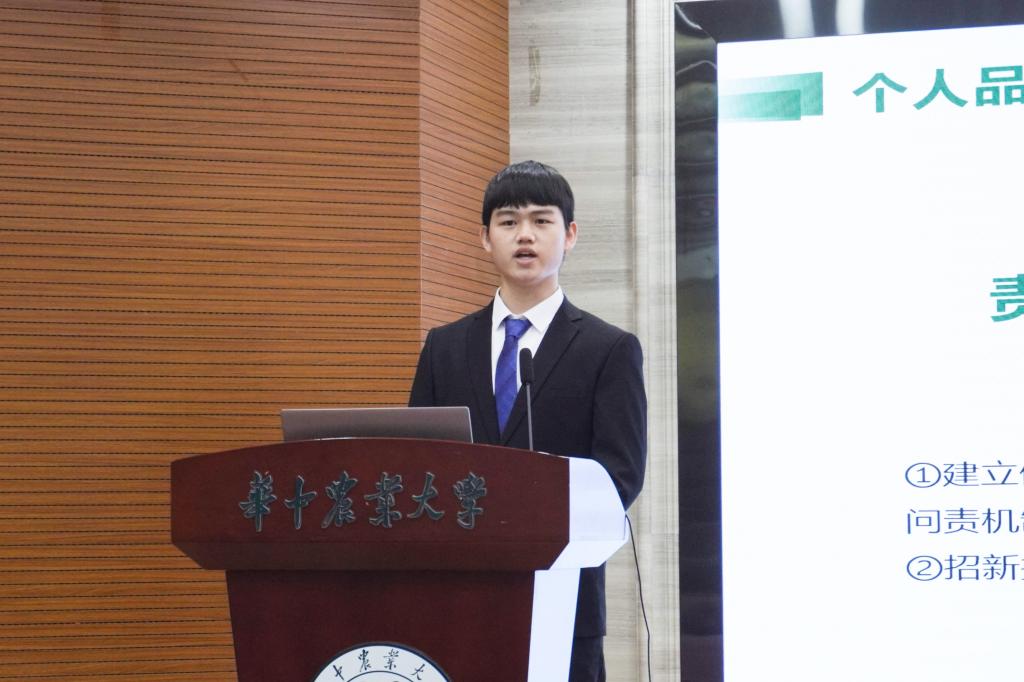 而后,新一届学生会系统负责人候选人依次上台进行竞选演讲。许文诺认为学生会主席团成员要正确运用同理心,主动分担工作,尤其要注重强化凝聚力建设。杨瑞祺就如何提升学生会成员业务水平这一问题进行深入思考,他提出加强作风建设和鼓励批评与自我批评两个方案,并建议学生会优化与完善系统工作手册。程旭从内部及系统之间的联系、信息双向反馈、团队建设以及加强宣传四个方面梳理自身工作思路,希望学生会加强内部联系,提高工作效率,更好地为学生服务。曾广萌强调招新换届时应严格把关,以工作态度为第一标准,为学院选拔出具有优秀个人品质与能力的学生骨干。