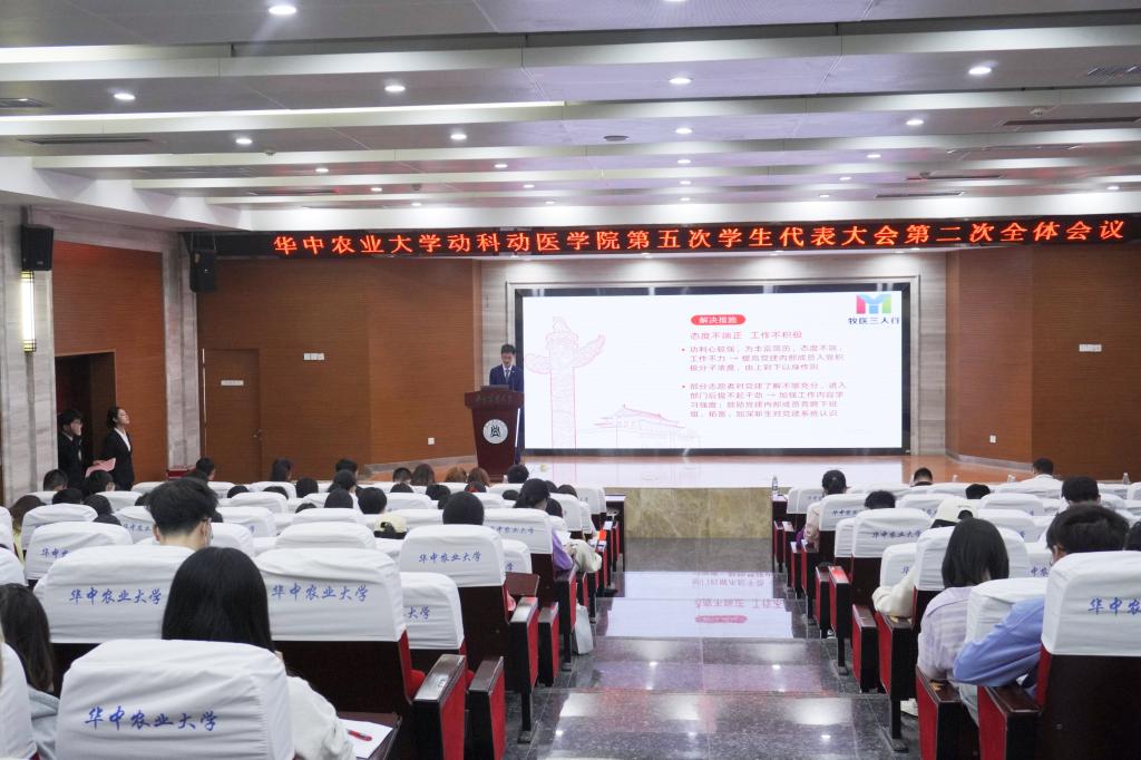 正式会议在庄严的国歌声中拉开序幕。首先,吕满向与会人员宣读了动科动医学院第五次学生代表大会的筹备情况,进行了学院第五次学生会提案工作的报告。