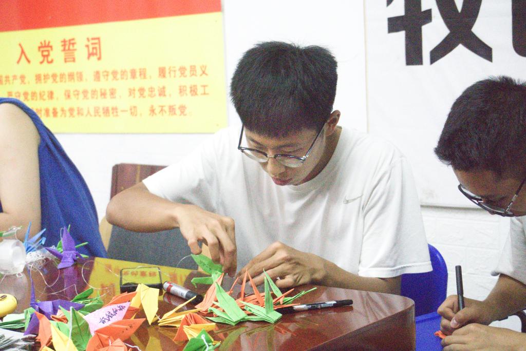 6月9日至6月16日,学院积极响应学校倡议,鼓励全校教职工、在校本科生、研究生开展纸鹤制作活动。各年级各班积极参与,为毕业生写下美好祝福,由纸鹤承载祝愿,带给毕业生们。党团学青的工作人员与志愿者也参与其中,于荟十活动室开展了两次集中的纸鹤制作活动。文艺部志愿者张钰丹表示:“纸鹤传深情,希望这些纸鹤能够将我们的祝愿带到毕业的学长学姐们身边,祝愿他们在以后的生活中乘风破浪,振翅翱翔!”
