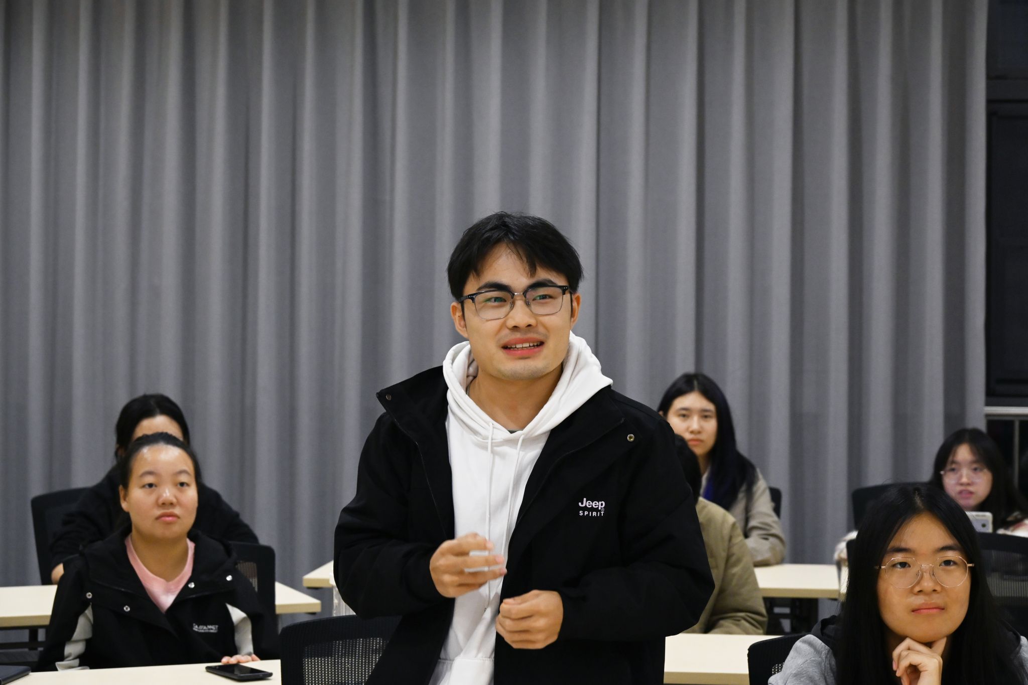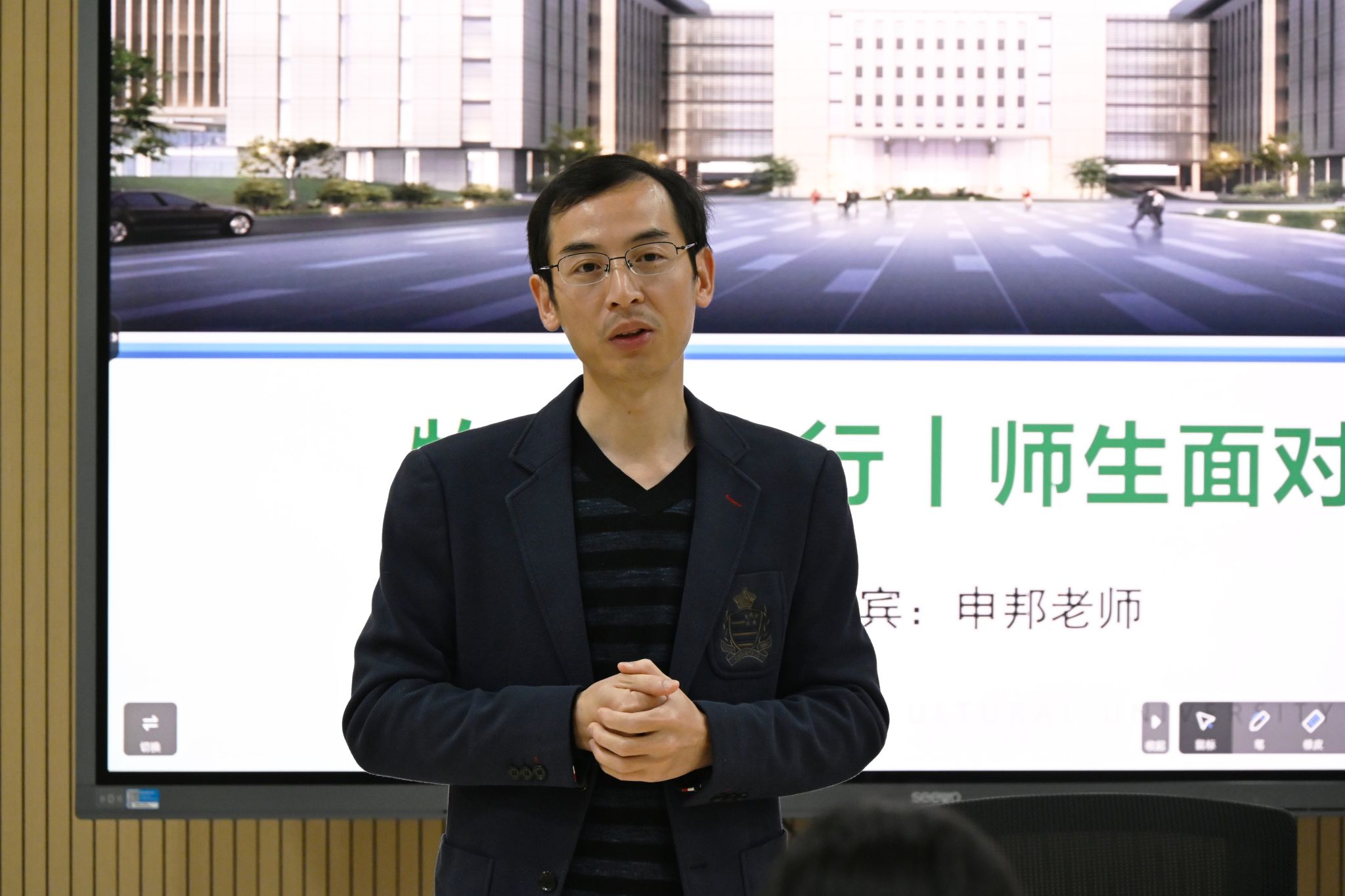 (通讯员:白晓星 摄影:秦钧昊)11月7日下午,“牧医三人行|周四有约”活动顺利在四综B202举行。学院副院长申邦就个人学习经历、科研实践、专业学习等问题进行分享,学生会轮值主席倪茁斌主持本次活动。