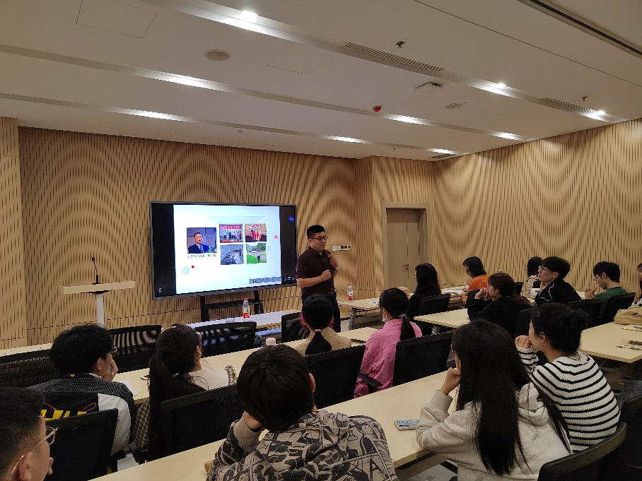 接下来,王喜亮副教授与大家分享求学、工作和创业的心路历程。他强调,知识改变命运。“为什么要读研?你在为谁读研?如何度过研究生生活?”他希望同学们带着这三个问题走上未来的科研之路,并向在场新生提出殷切期望,一是要谨记“思想有多远,路就有多远”,为未来勾勒蓝图至关重要;二是要谨记学习态度的重要性,时刻做好准备,心中有责任感;三是要谨记“眼界决定境界、定位决定地位、思想决定出路”。他金句频出,以创业成功的案例,鼓励在场新生从现在开始做好人生计划和职业生涯规划,并勇于尝试。最后,王喜亮以“学、看、行、思”四个字寄语同学们。