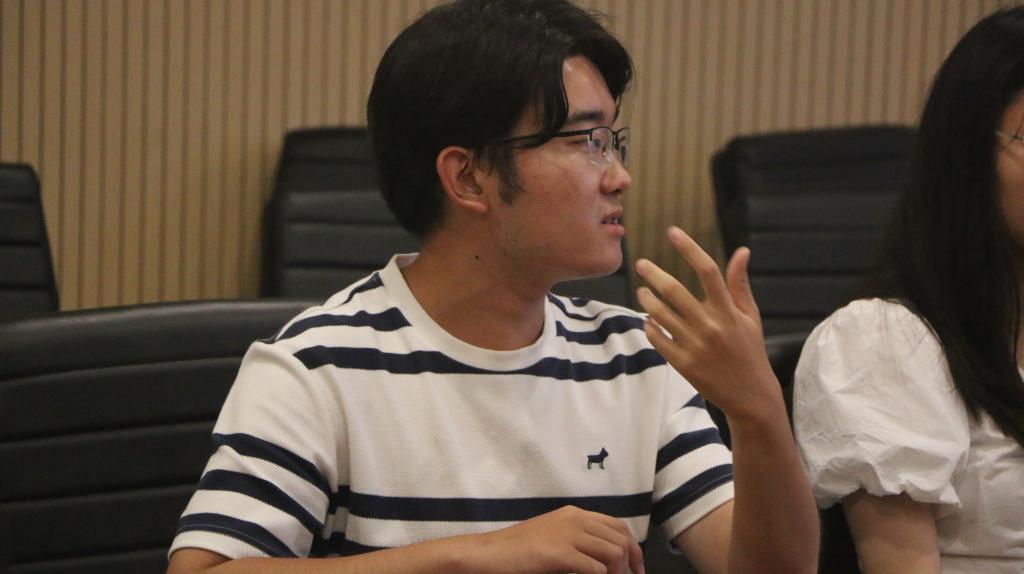 分享环节,高钰姗重点讲解了新闻采访时的基本技巧和流程,她启发参会的同学们要学会“用简短专业的问题激发对方有价值的分享”。她说到:“在面对不同性格的采访者,我们应采取不同的策略让对方轻松自然的接受你的采访,同时,同学们也应对事件和受访者的背景资料提前做好功课,高效获取所需要的、有价值的信息。”期间,同学们全神贯注,联系自己在工作中的实际进行思考和提问,得到了热情友好的回复。