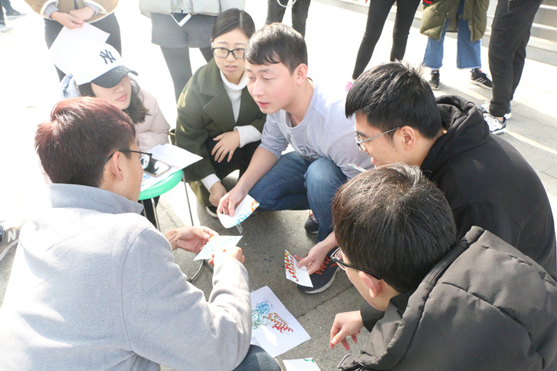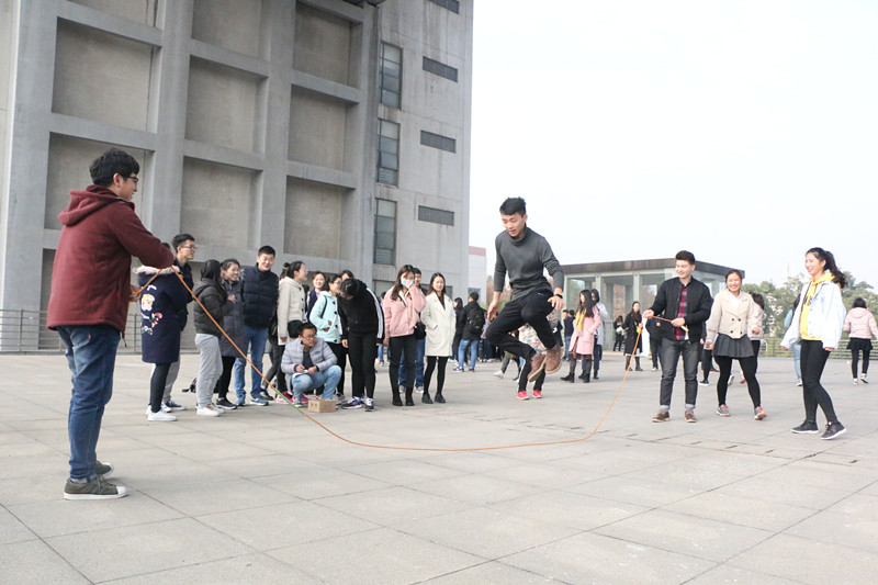 活动分为三个游戏。在穿越“火线”游戏中,所有队员需依次穿越跳绳,连续跳跃5下,到另一侧纸箱抽出纸条并回答问题。游戏“你画我猜”考验了小组的默契配合度,全体队员一起记忆与实验室相关的名词,然后抽取其一,由第一名队员用肢体语言将信息依次传递给最后一名队员猜出名词。“跳方格,拼试验”游戏要求队员跳过方格取碎片,完成拼图。各小组争分夺秒、密切配合,失败后交流调整,帮助自己的队伍顺利通关。来自动科种测班的张佳丽表示出自己对游戏的喜爱,她说:“在游戏中,我收获了很多,懂得了团队合作的力量。”