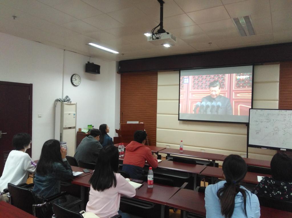 (通讯员 韩镇 供图 韩镇)2019年10月16日,动科动医学院研究生第九党支部在第一综合大楼B114召开了“七十周年苦难辉煌”主题党日活动。支部成员重温国庆70周年阅兵仪式及习近平主席大会讲话视频剪辑,学习黄大年先进事迹,并分享了自己的感想。