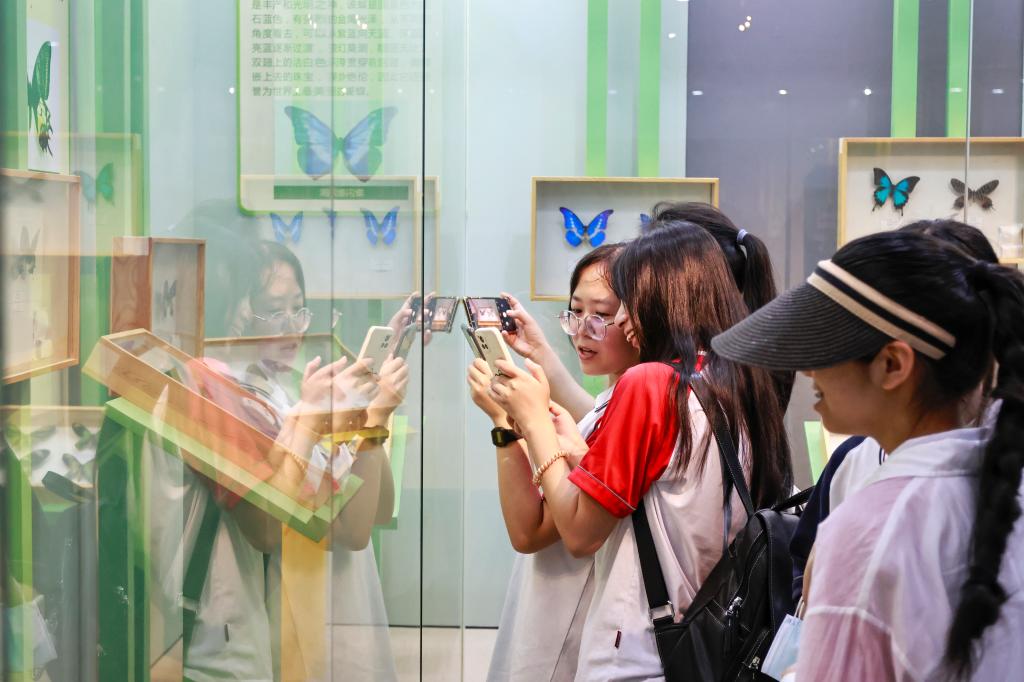 同学们分享博物馆不同的蝴蝶标本(崔桐恺 摄)