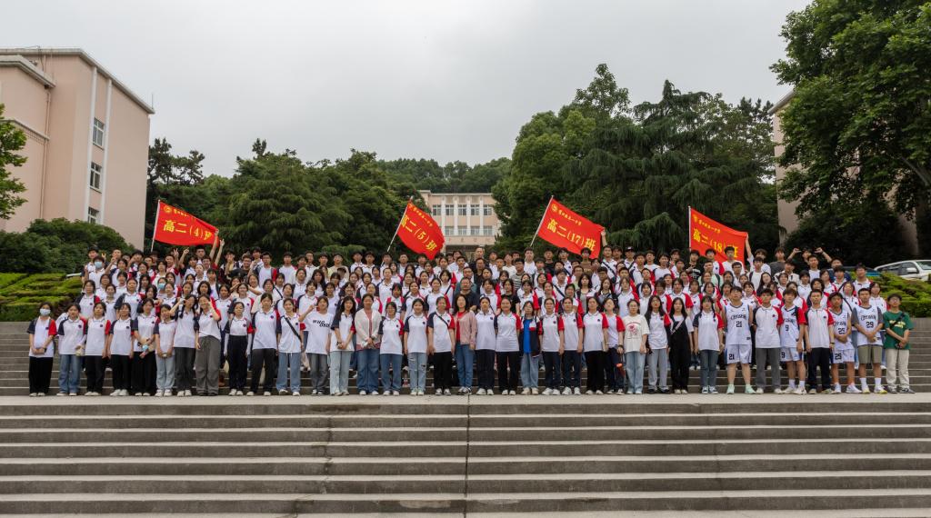 湖北省罗田县第一中学师生在365英国上市公司合影留念(崔桐恺 摄)