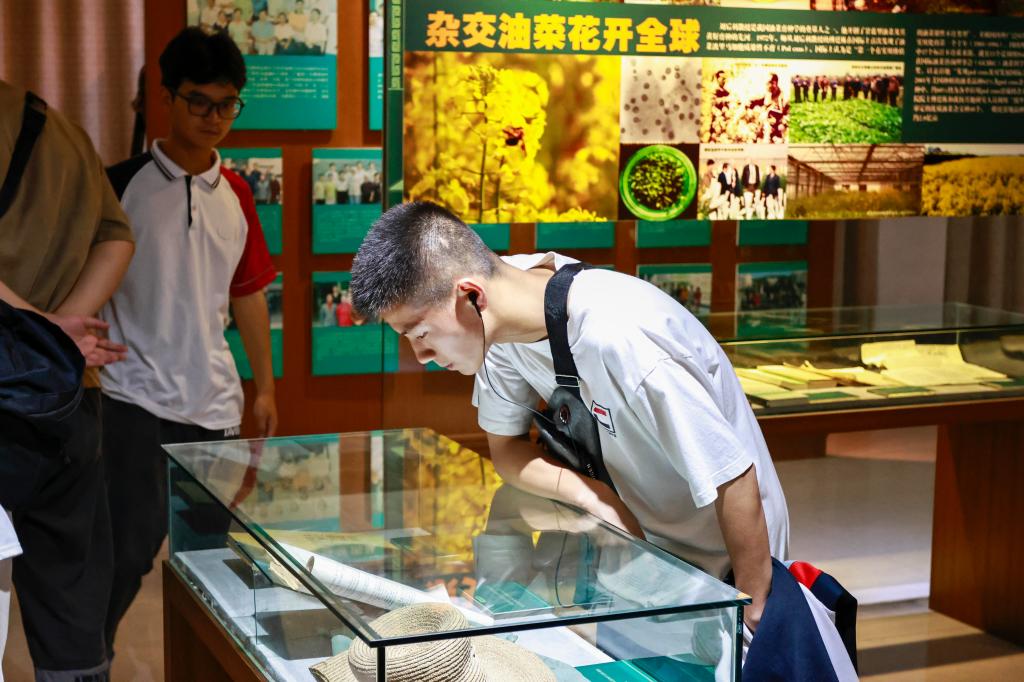 师生驻足仔细观看校史馆历史展品(崔桐恺 摄)