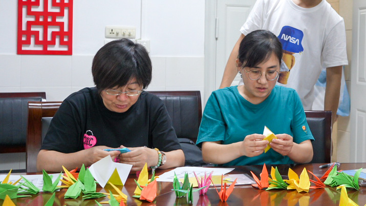 动科动医学院教师集中折叠千纸鹤祝福毕业生