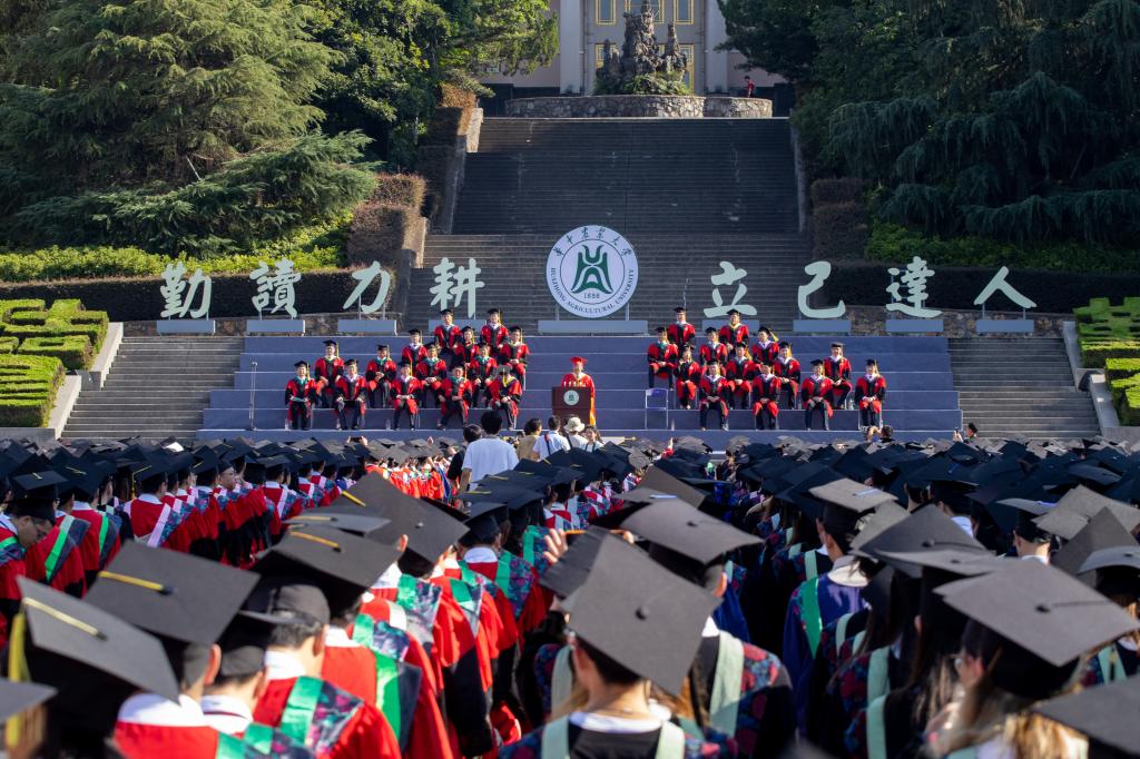 校长李召虎以“勇敢走在时代前列”为题发表讲话,他认为,新时代华农学子应做到三点。第一,做一名爱国的“忠诚者”,厚植家国情怀,点亮信念之光;第二,做一名担当的“奉献者”,厚植无私品格,成就人生价值;第三,做一名奋斗的“先锋者”,厚植拼搏精神,走在时代前列。在讲话最后,他叮嘱毕业生们,要牢记华农“勤读力耕,立己达人”校训,坚守华农人“不张扬、不浮躁、不盲从”品格,祝福毕业生们如虎添翼、展翅高飞。