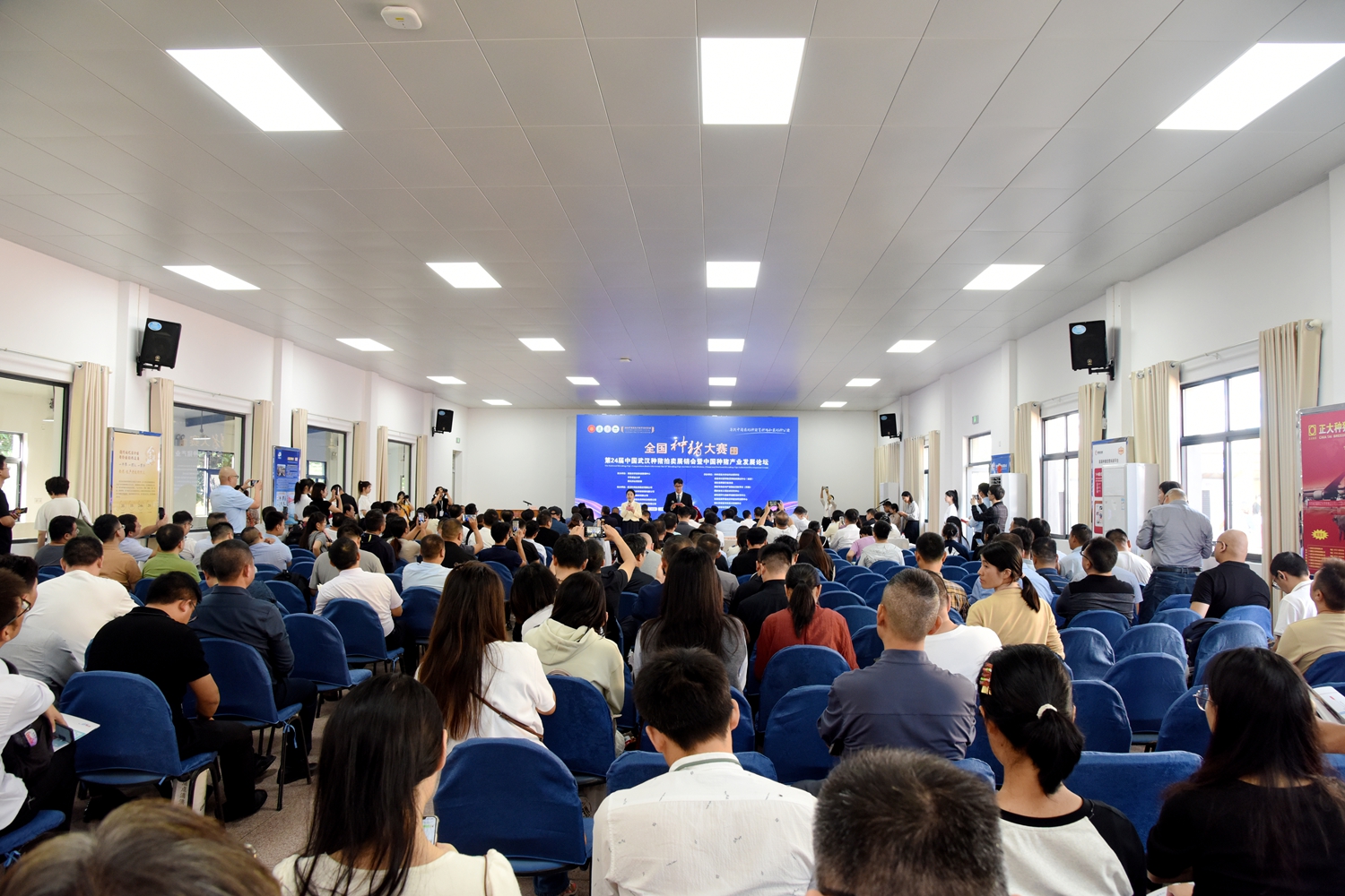拍卖现场布置得井井有条,各个区域划分明确。拍卖厅前方,两排座椅整齐排列,来自不同省市的企业代表们围坐两侧,目光紧盯着大屏幕和正中间紧拉着的帘子,期待着自己心仪的种猪登场。