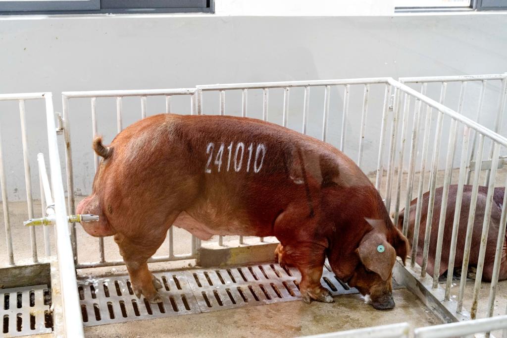 本届种猪大赛收测了来自湖北、湖南、江西、河南、福建、广东、广西、四川、新疆等9省(自治区)22家种猪企业送测的262头种公猪,品种涵盖杜洛克、长白、大白、巴克夏等。经过农业农村部种猪质量检验测试中心(武汉)近4个月的严谨测定和科学评估,依据“综合指数、专家组外形综合评分”优秀排名,遴选出15头特优级种公猪公开拍卖,106头优级种猪进行暗标竞购。