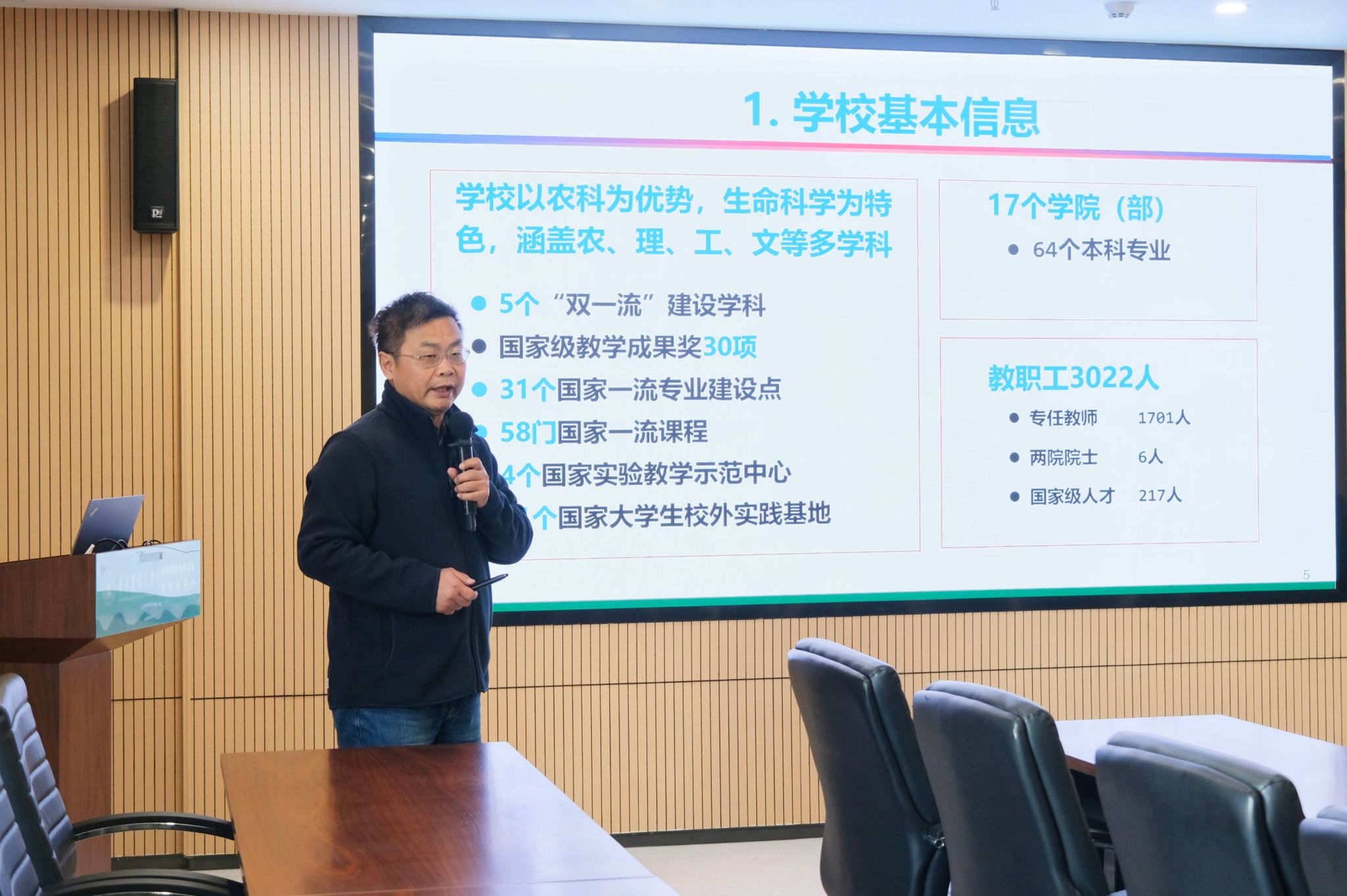 专家组组长、东北农业大学动物医学学院王洪斌教授介绍了农学门类服务国家战略认证试点工作任务与要求。王洪斌表示,这次的认证工作不仅是对动物医学专业的考察,更是双方就共同发展中遇到的问题进行深层次交流的机会,本次的三级认证也旨在为其他高校提供兽医专业人才培养方面的成功经验与做法。