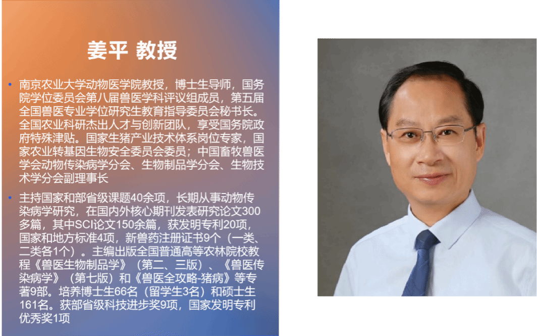 姜平教授带来了“动物用转基因微生物安全评价管理与技术要求”的精彩报告。他详细阐述了转基因安全评价的依据、动物用转基因微生物的分类及申报程序各阶段的要求,并系统介绍了转基因微生物安全评价的各个方面。姜老师强调,实验数据的详细性和完整性对疫苗申报和顺利审批至关重要,并针对生物安全性评价中动物选择、剂量测试、妊娠动物影响等出现的常见问题给出了针对性的建议。