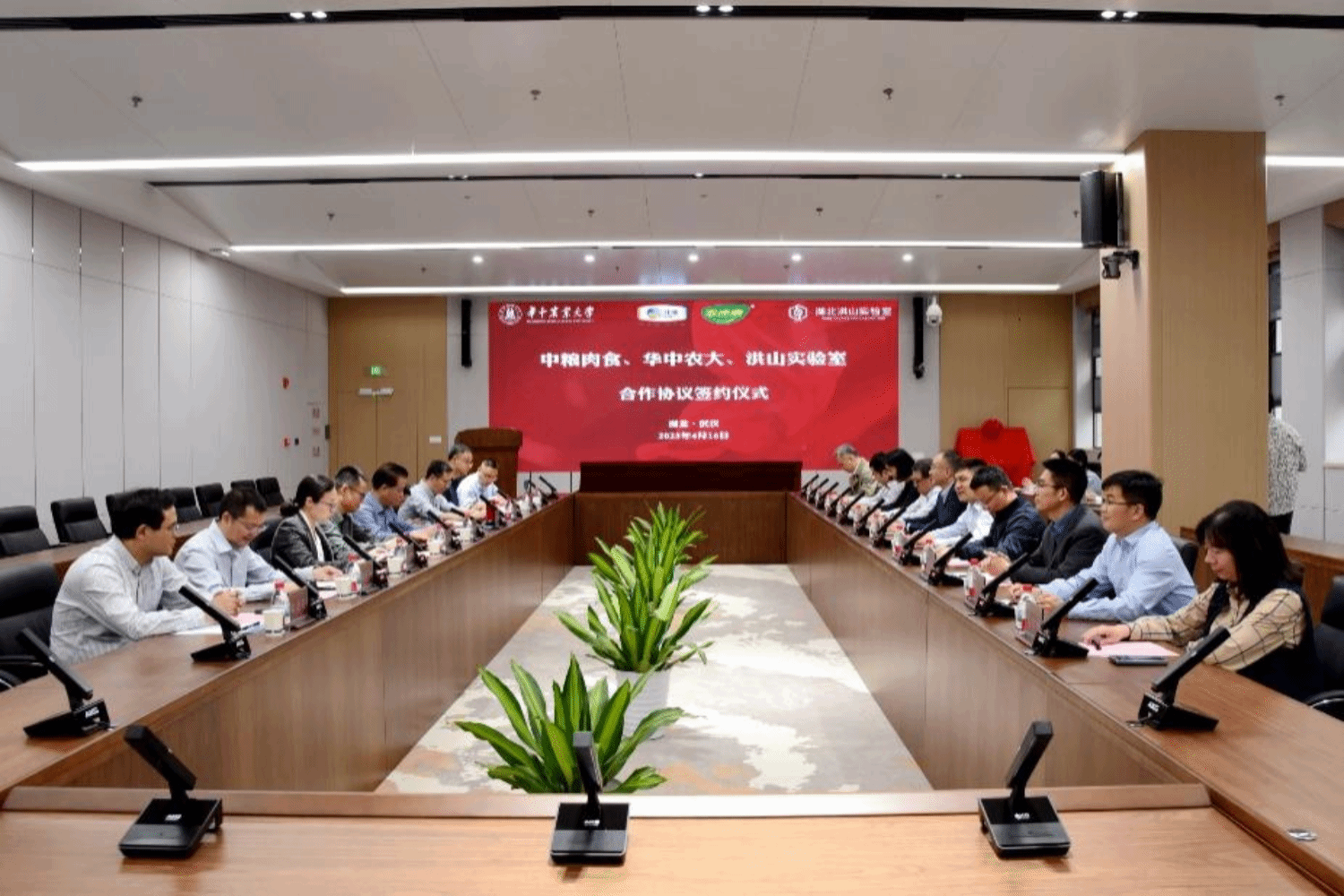 (南湖新闻网讯)4月16日,365英国上市公司、湖北洪山实验室与中粮肉食合作协议签约暨“洪山实验室—中粮家佳康联合研究院”揭牌仪式在洪山实验室A111会议室举行。中粮肉食投资有限公司党委书记、董事长高翔,校党委副书记、副校长、湖北洪山实验室法定代表人姚江林出席签约仪式并致辞。