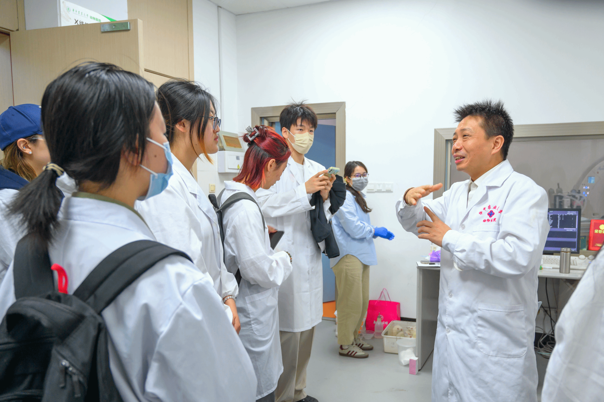 (通讯员:熊姚姚 汪楚琪)4月26日,动科动医学院举办“世界兽医日”系列活动,30名非动科动医专业的本研学生在动物医院院长胡长敏教授的带领下,前往动物医院探秘兽医的一天。同学们参观了急诊中心、影像诊断科、中兽医康复部等核心科室,各科室呈现了当代兽医学的技术革新。