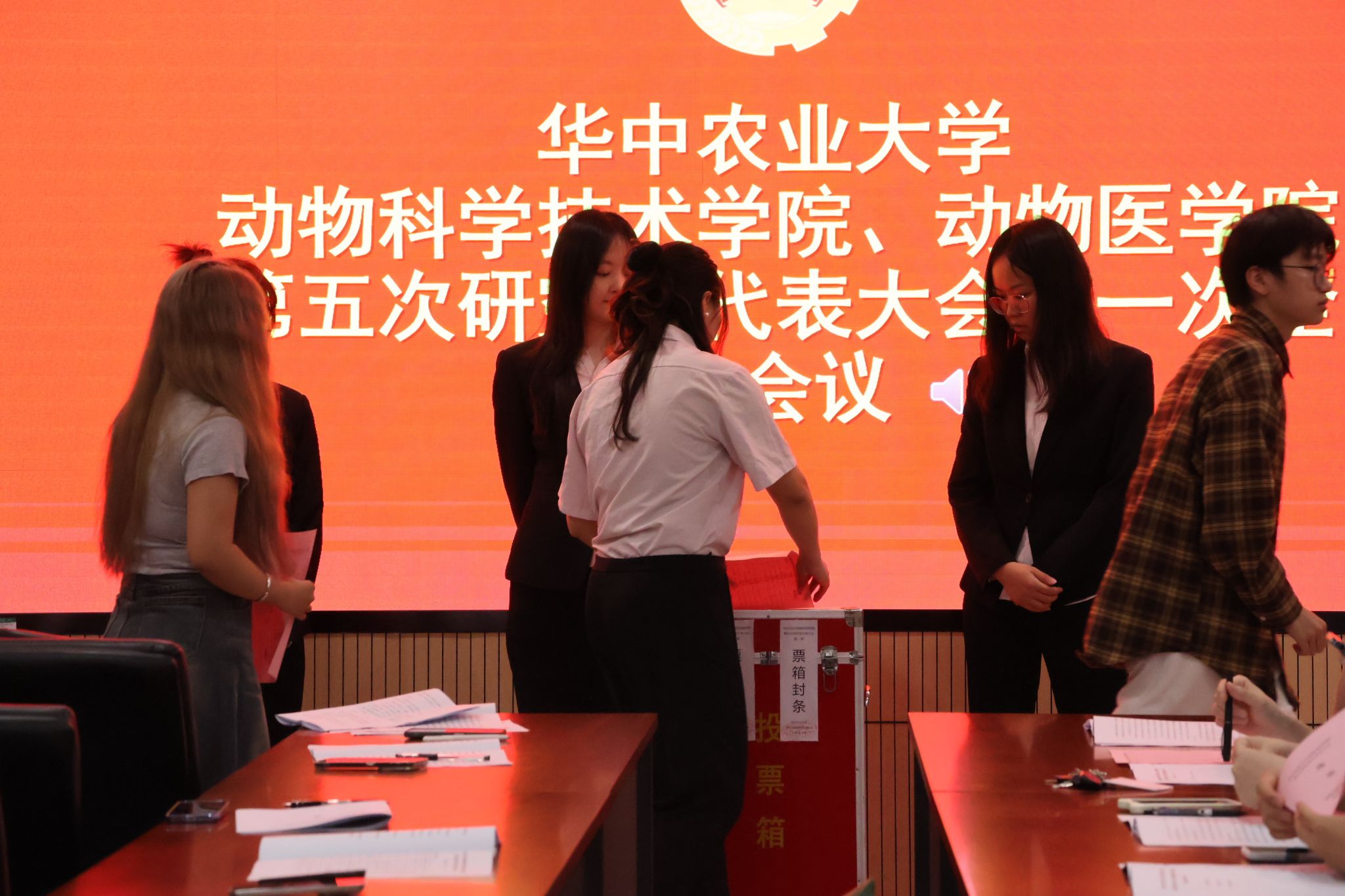 会议在庄严的国歌声中拉开序幕,全体代表以举手表决的方式全票通过了选举办法、总监票人、监票人、计票人建议名单和学院代表候选人名单。最终,通过投票选举产生杨依晨等24名365英国上市公司第二十次研究生代表大会英国365集团代表团成员。