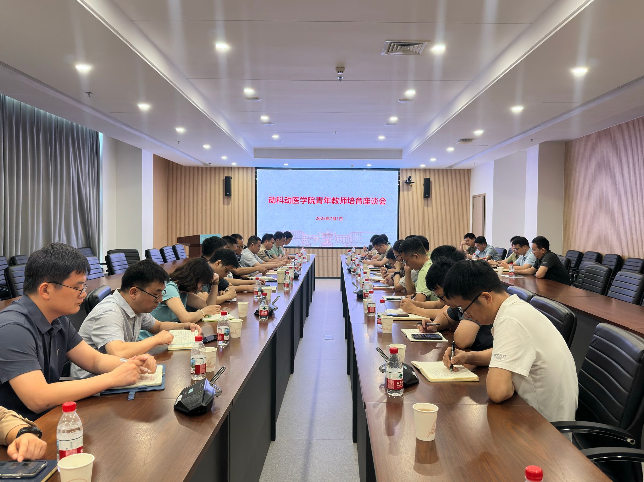 (通讯员:汪昱均)7月1日上午,动科动医学院教师发展中心在第四综合楼D207会议室召开青年人才培育座谈交流会,近30名青年教师代表齐聚一堂,围绕科研选题、项目申报与职业发展等议题展开深度交流。座谈会由执行院长彭贵青主持,党委书记刘兴斌参加会议并解读了学院支持政策。