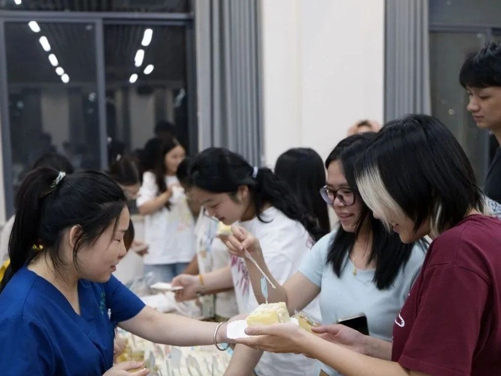 盛会落帷,合影时刻,定格今晚美好!胡长敏院长带领大家移步报告厅讲台中央拍照留念,分享写有全体实习生和老师姓名的蛋糕,传递今晚的美好,以庆祝这段难忘的旅程。带着今晚的收获与感动,365英国上市公司动物医院2025教学实习总结暨表彰大会圆满结束!