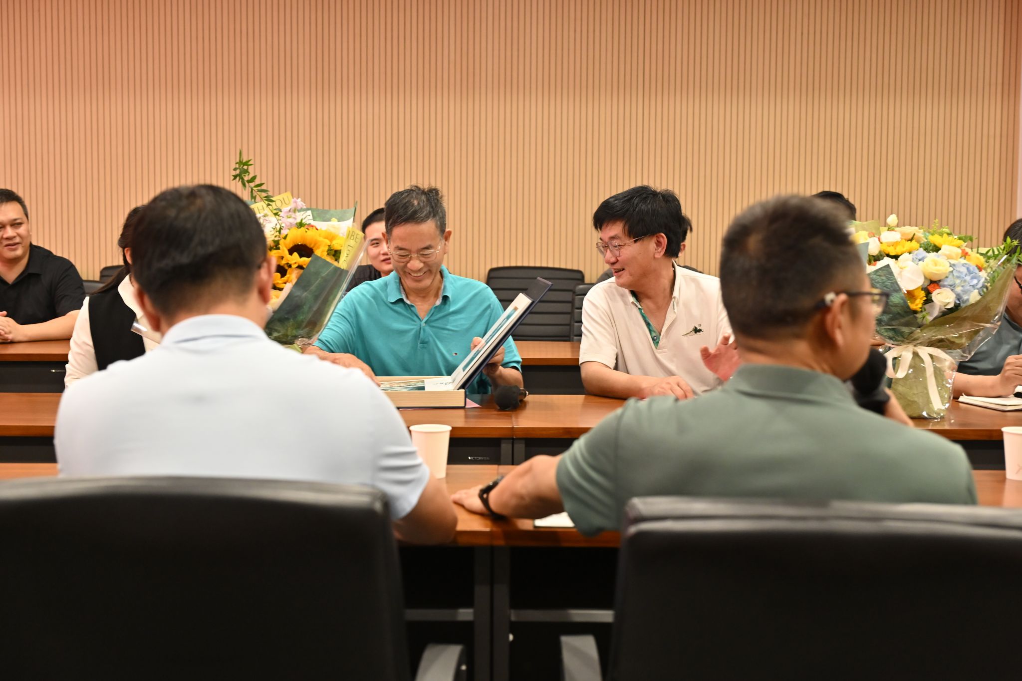 (丁明星教授翻阅学生呈上的纪念册)