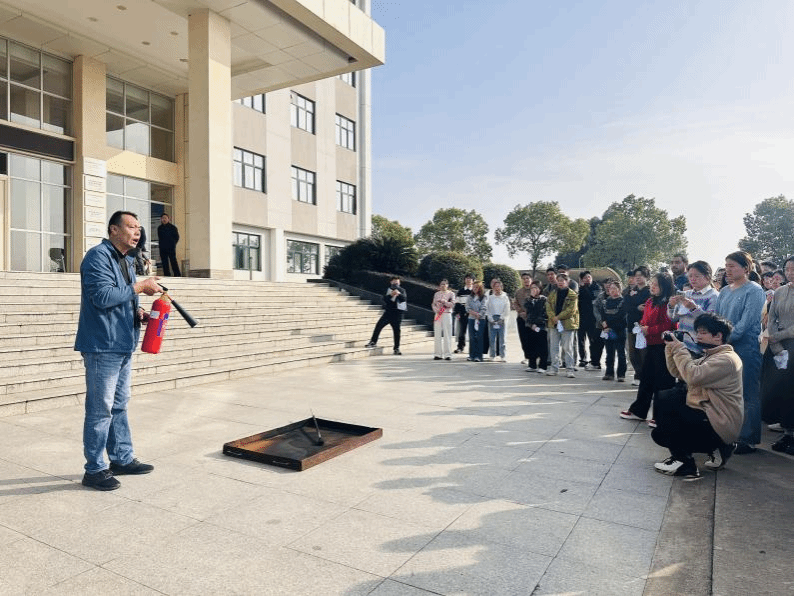 疏散集结后,校园建设与安全保卫部孙勇老师现场讲解了常见灭火器的分类及使用方法,指出了各类灭火器的最佳适用场景,对灭火器使用的注意事项进行了强调。现场师生在专业指导下依次进行了灭火器实操练习。