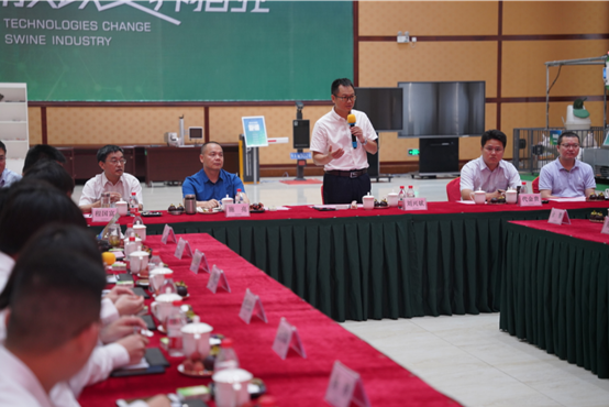 6月17日,动科动医学院党委书记刘兴斌带领高级临床兽医、生态智慧养殖人才改革班25名研究生前往广西扬翔股份有限公司参观交流,与公司总裁施亮、人力资源总监李曜华等进行座谈,学校派驻扬翔的校企合作高级专员程国富教授、动科动医学院党委副书记代金贵、副院长胡丽华等参加本次交流。