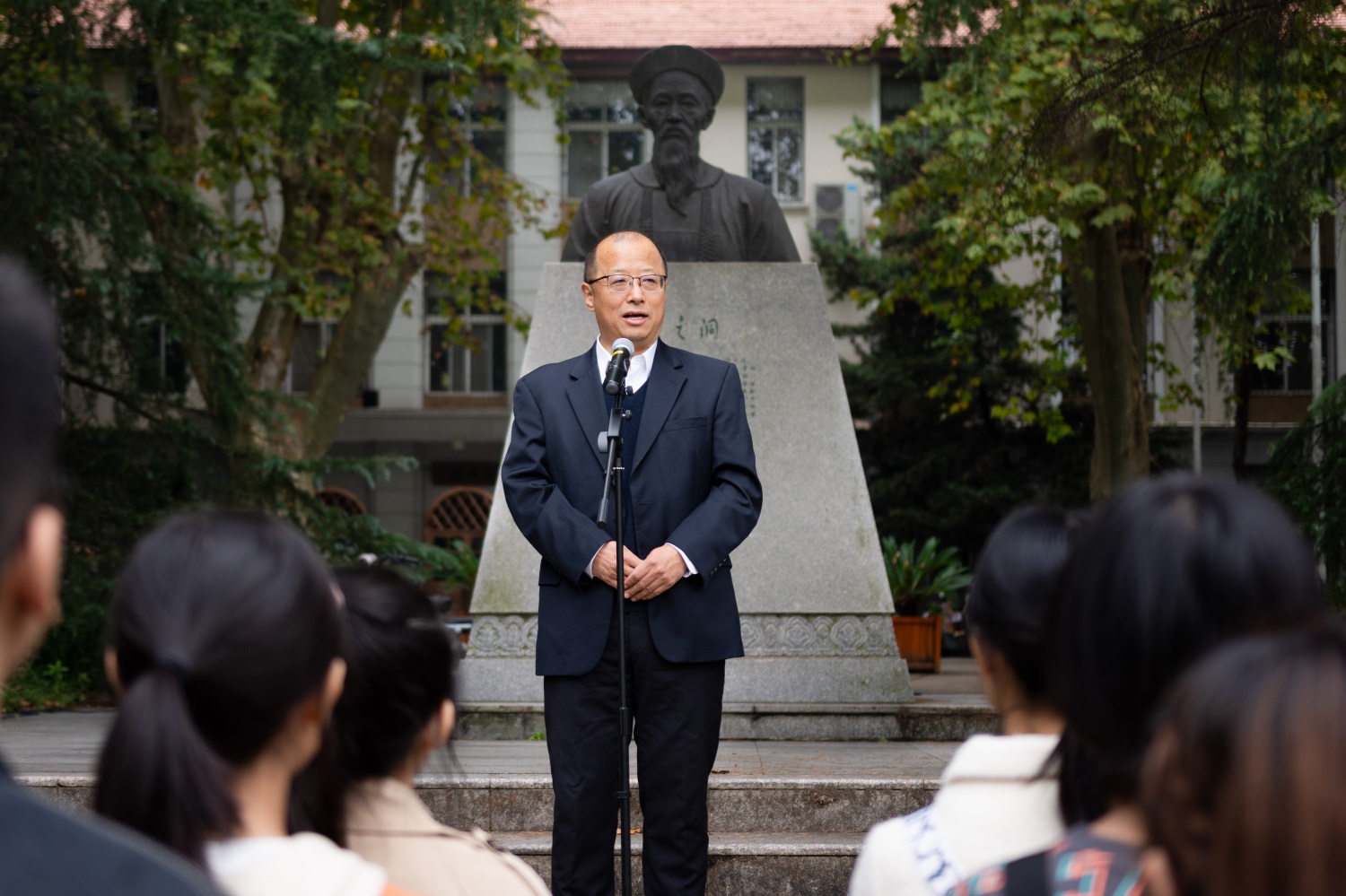 在雄壮的国歌声中,现场师生并肩站在张之洞像前,共同参加了这场特殊的仪典。
