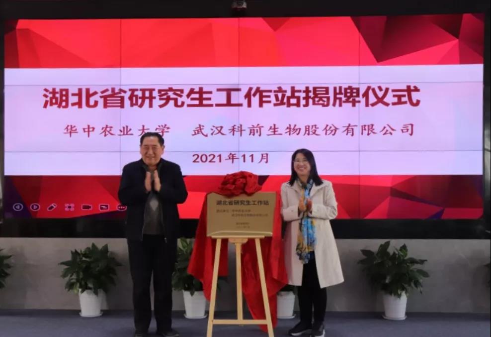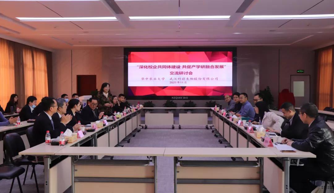 校企双方就进一步深化校企共同体建设、共促产学研融合发展进行研讨。陈焕春院士、赵书红院长为湖北省研究生工作站揭牌。
