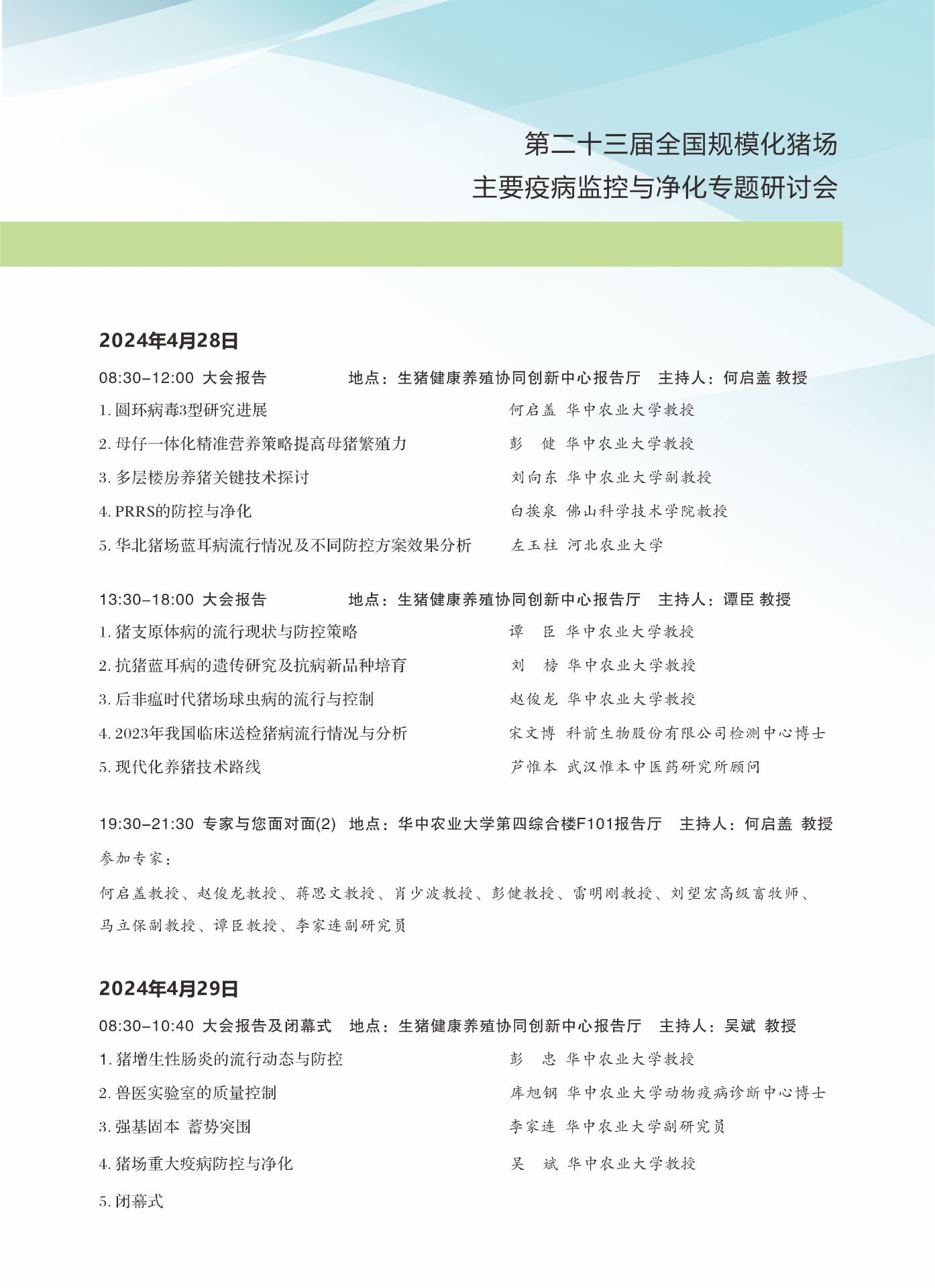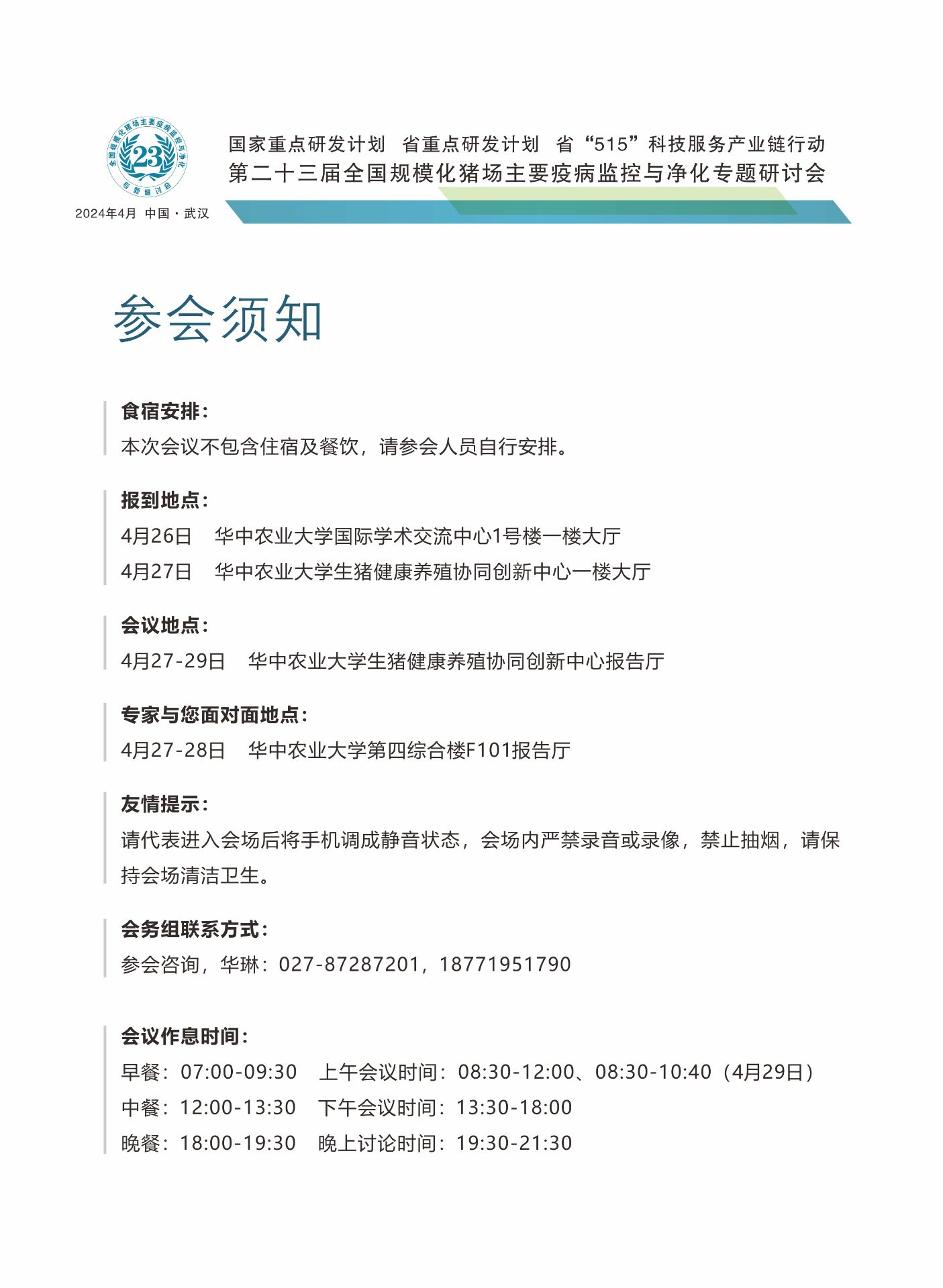 第23届全国规模化猪场主要疫病监控与净化专题研讨会会议指南