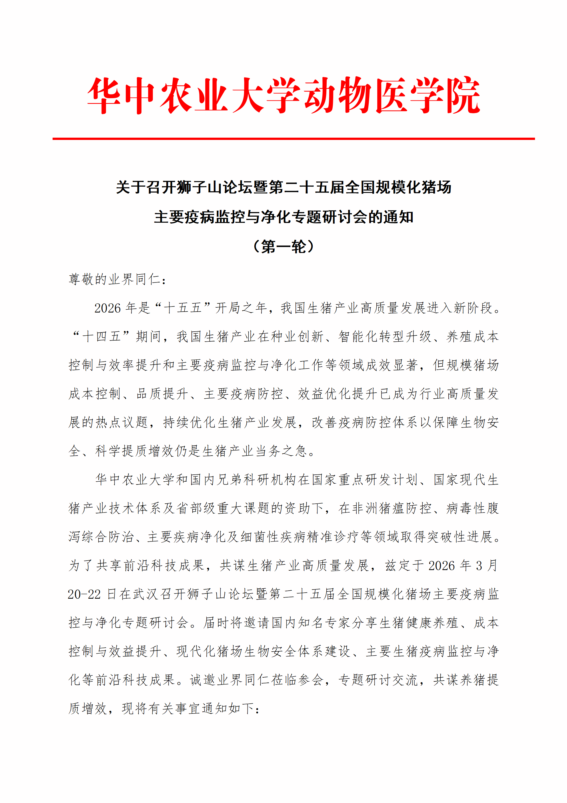 狮子山论坛暨第二十五届全国规模化猪场主要疫病监控与净化专题研讨会-会议通知(第一轮)
