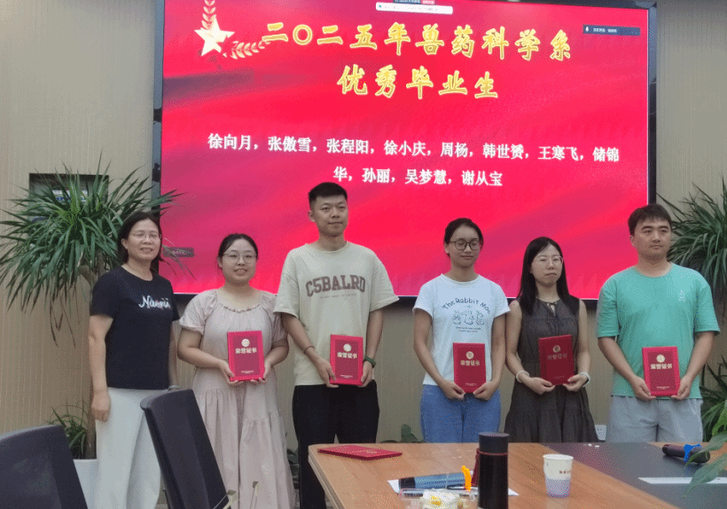 会议第五项,开展了特色活动,首先为上半年政治生日的党员庆祝;其次,开展毕业生座谈会,邀请毕业生畅谈自己读书时的一些经历和感想,给刚进实验室博一和研一学生传授经验,最后并对本年度兽药科学系的优秀毕业生进行了颁奖仪式。