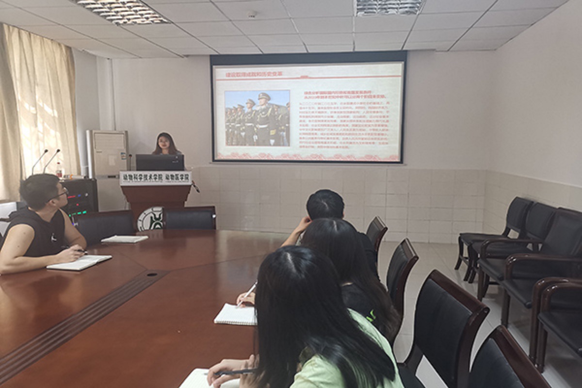 (动科动医学院通讯员 汪国俊 白威 供图 贾相超)牢记习近平总书记“与祖国同行,为人民奉献”嘱托,10月23日,动科动医学院预防兽医学第一党支部在动科楼B105开展了“我和我的祖国”主题教育活动,会议由党支部书记刘琳同志主持。