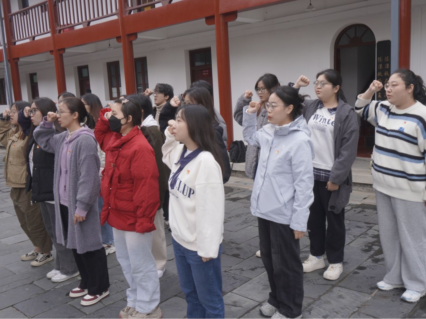 在中共五大会址纪念馆的党旗下,动科动医学院各党支部预备期满一年的预备党员进行转正宣誓大会。会上,全体拟转正党员在陈炳宇的带领下庄严宣誓,表达对党的忠诚、对人民的担当。