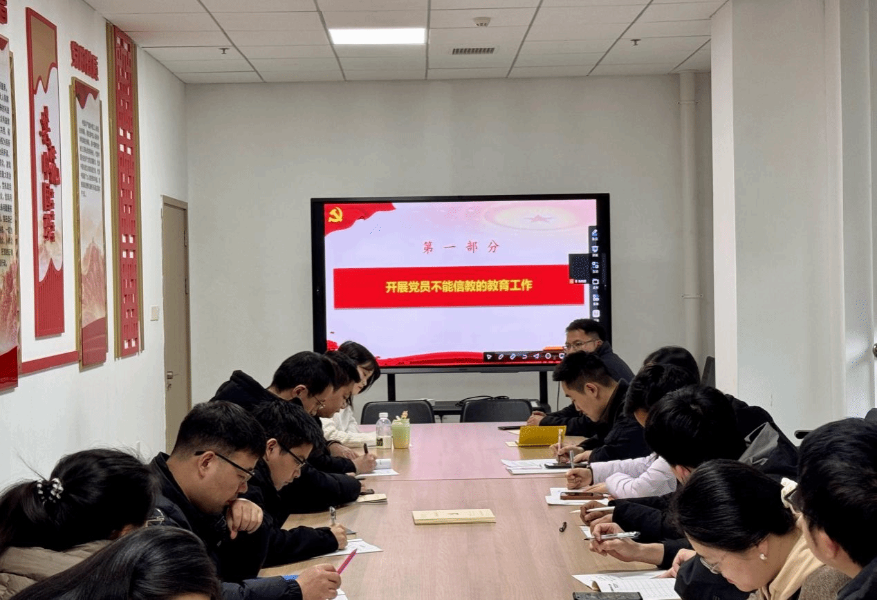 会上,莫全同志围绕“党员不能信教”主题开展专题教育,系统介绍我国宗教类别及政策法规,还重点解读了《中国共产党纪律处分条例》第六十九条、第七十条关于党员干部信仰宗教的纪律规定。他强调,共产党员必须坚定马克思主义无神论立场,严守党章党规,杜绝参与任何宗教活动,这是保持党的先进性和纯洁性的根本要求。莫全同志还带领支部同志学习全国两会精神,学习习近平总书记在民盟民进教育界联组会上的重要讲话精神。莫全同志指出,习近平总书记在会议中强调,新时代新征程,必须深刻把握中国式现代化对教育、科技、人才的需求,强化教育对科技和人才的支撑作用,进一步形成人才辈出、人尽其才、才尽其用的生动局面。