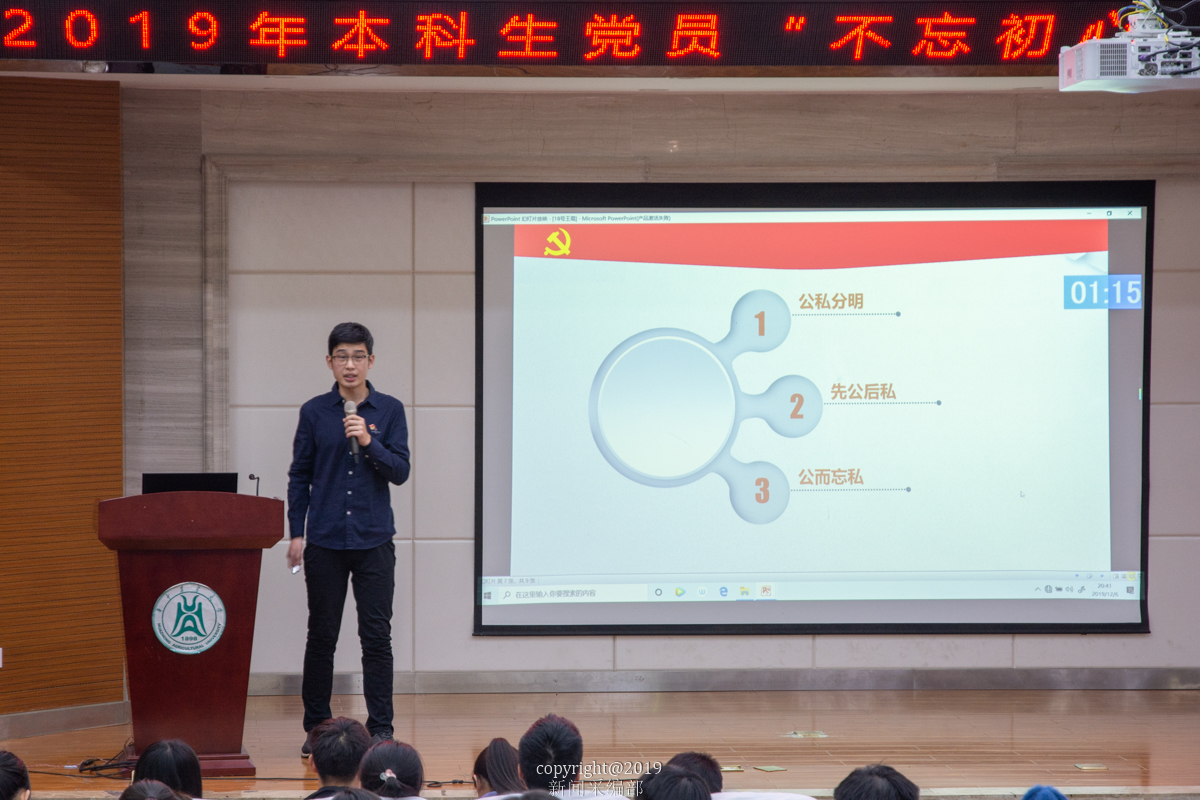 (通讯员:高宁 摄影:钟幼筠)12月6日晚,本科生党员“不忘初心,牢记使命”微党课大赛决赛在学生综合服务楼501报告厅举行。本次微党课大赛由校党委组织部和本科生院共同主办,本科生党建工作办公室承办。出席本次比赛的嘉宾有党委组织部副部长赵凯博、机关党委秘书丁记峰、本科生思想政治教育管理处张进,以及各学院负责本科生党建工作的辅导员以及本科生党员代表们。我院动科第一党支部牟星美同志、动医第五党支部王琨同志参与了本次决赛。