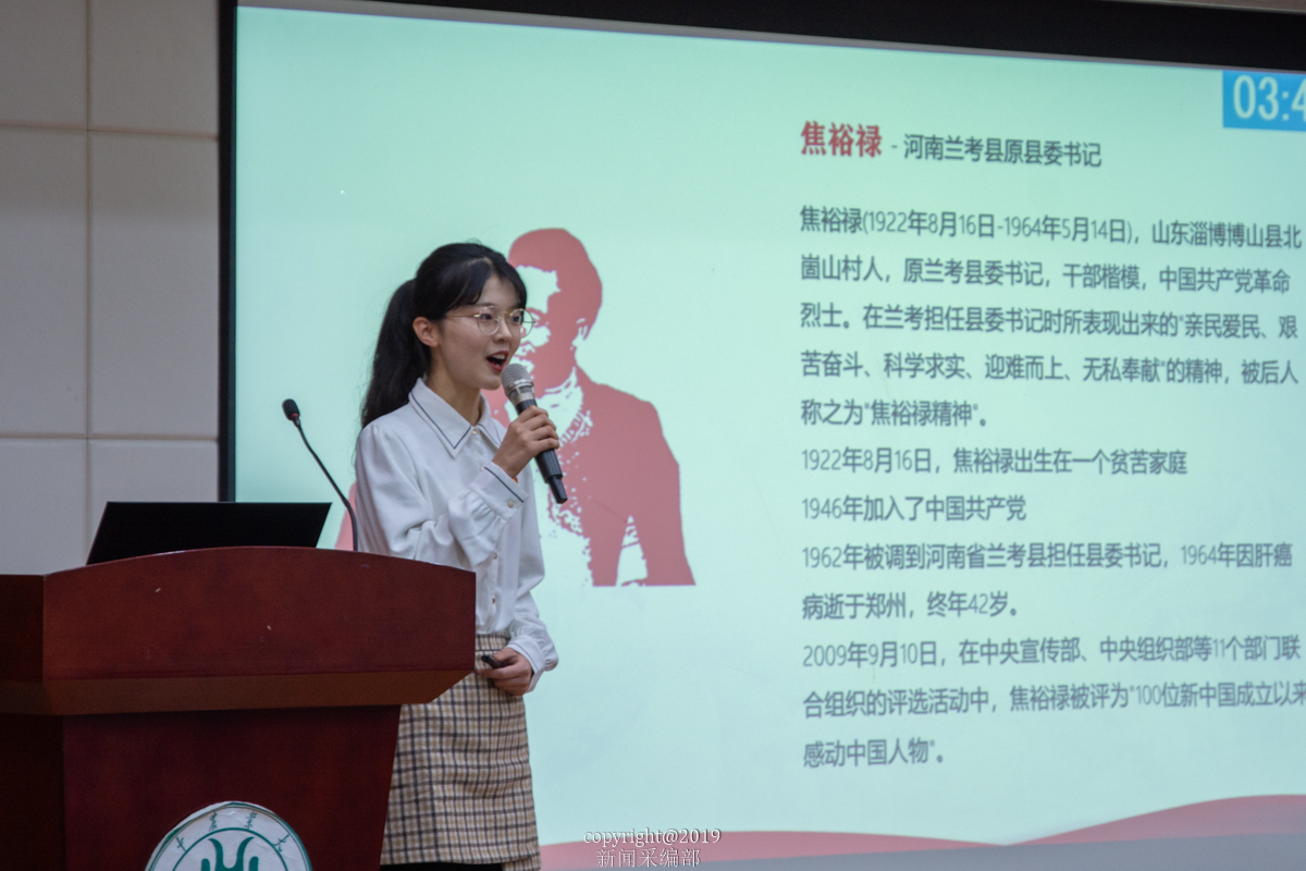 牟星美同志微党课的主题为“追思焦裕禄”,她通过分享自己今年暑期在河南兰考的社会实践,与大家共同学习焦裕禄精神。她将焦裕禄精神概括为“倾情种树育林、与群众心连心、坚定信念奋斗不止”三个方面。她号召党员同志们努力学习、弘扬和传承焦裕禄同志为人民服务、无私奉献的精神,在学好专业知识的同时,将个人的奋斗融入到国家和民族的奋斗大潮中,将个人命运与国家民族命运紧密相连。最后,她用习近平总书记的《念奴娇·追思焦裕禄》与大家共同缅怀焦裕禄同志。