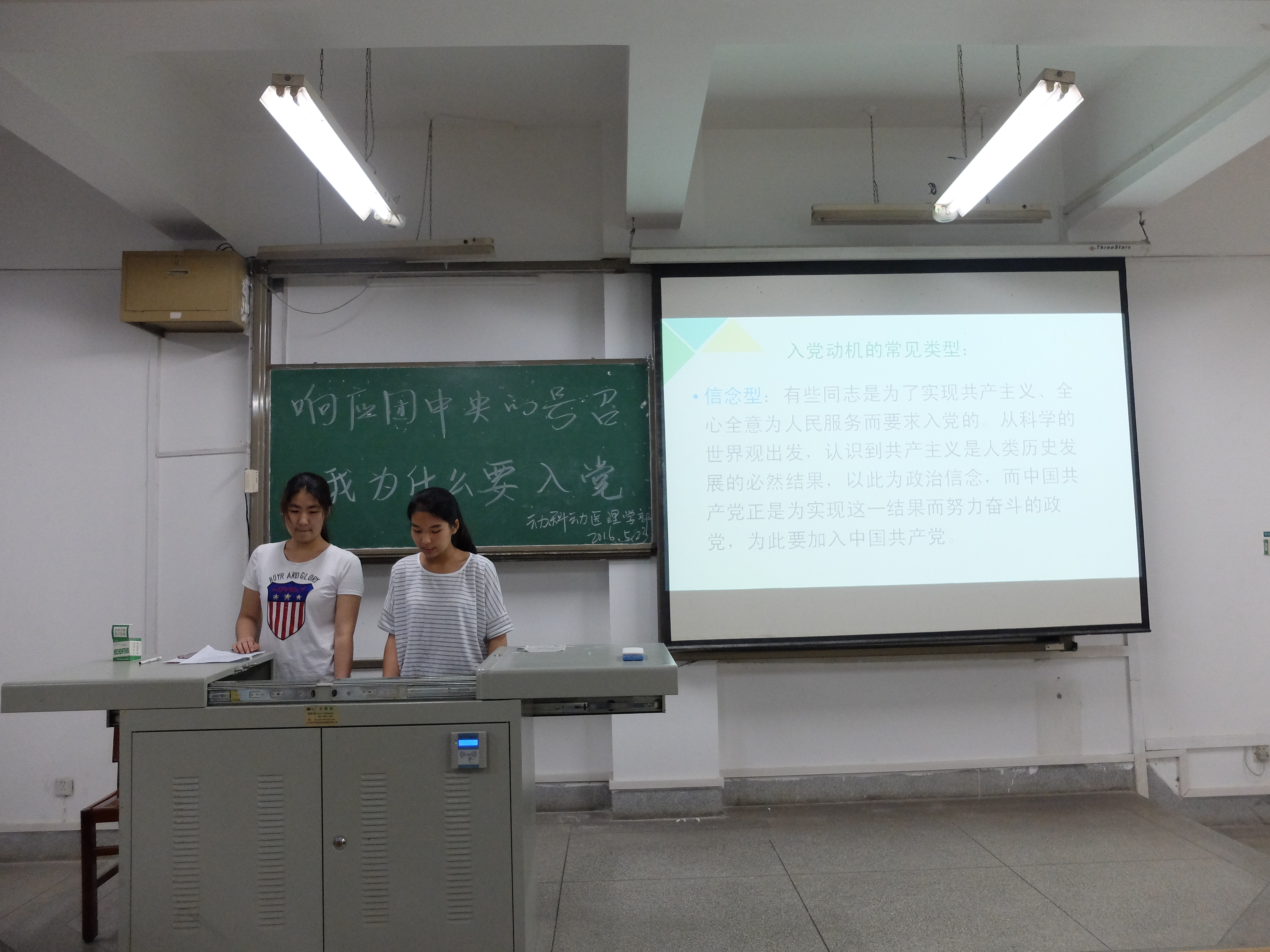 通讯员:许茜 5月23日晚七点半,由我院理论学习部承办的理论研讨会在二教103召开。参加讨论的人员主要是64期入党积极分子。讨论会以小组演讲方式围绕“响应团中央号召的必要性”和“我为什么要入党”两个话题进行探究目的是引导同学正确对待入党问题明确入党动机。